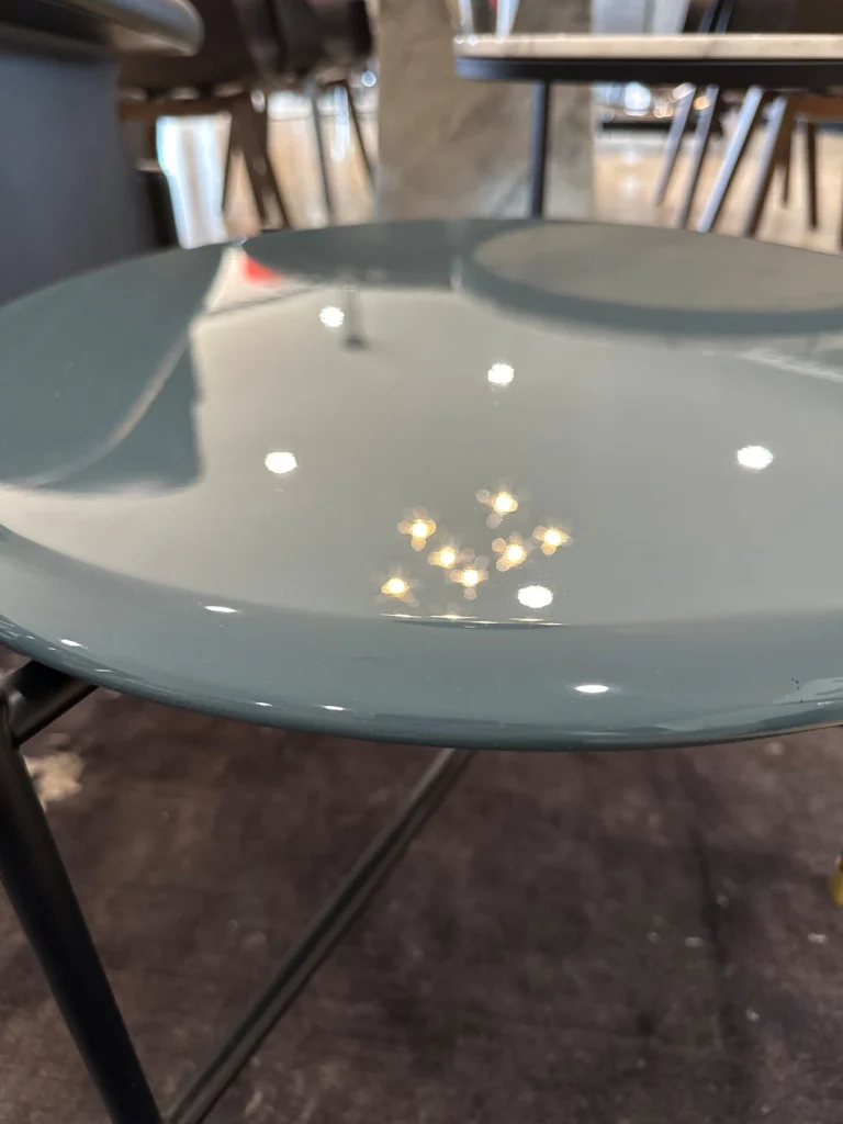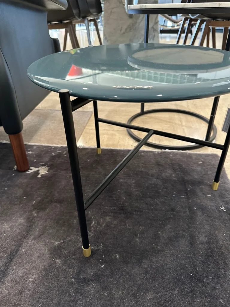 Il piano del tavolino Adrian ha una silhouette elegante e snella, affusolata alle estremitร , che sembra quasi fluttuare nel vuoto grazie alla struttura sottile ma robusta. Disponibile con top in lacca lucida mentre la base รจ in metallo tubolareย in ottoneย nero, completata da puntali in ottone, per un tocco puramente elegante.ย La finitura in azzurro aggiunge un accento contemporaneo e fresco, rendendolo ideale per coloro che cercano un elemento d'arredo distintivo.ย Sia come elemento funzionale per appoggiare libri e oggetti di valore, sia come pezzo decorativo, Adrian riesce a coniugare estetica e praticitร  con stile.