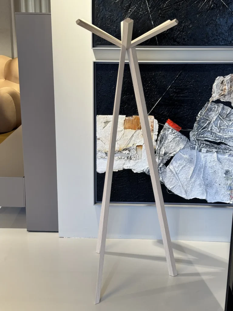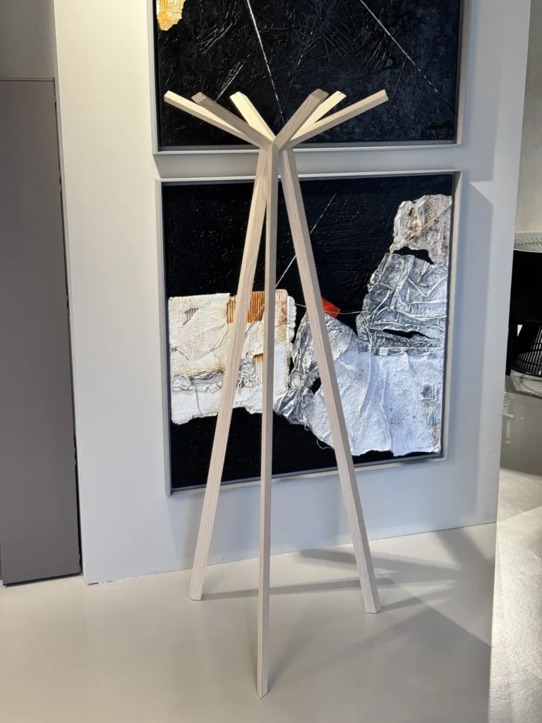 Rokumaru di De Padova, disegnato dal celebre studio Nendo, รจ un appendiabiti che fonde il design contemporaneo con la tradizione orientale. Ispirato alla forma di un albero, rappresenta una visione poetica della natura, trasformando un elemento funzionale in un'opera d'arte minimalista.