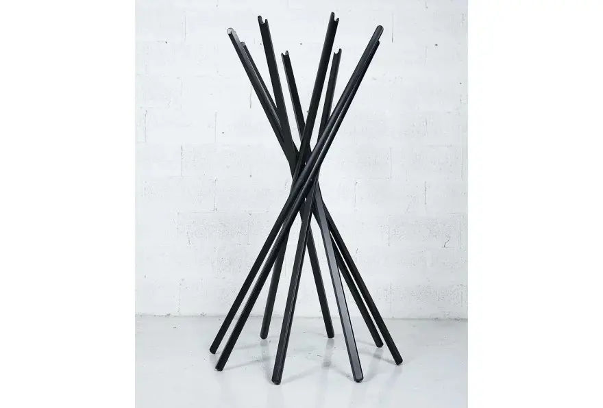 LโAppendiabiti Sciangai Zanotta si distingue per la sua struttura pieghevole e adattabile, composta da elementi che si aprono come i bastoncini del celebre gioco da cui prende ispirazione. Questo sistema permette di creare numerosi punti di appoggio per abiti e accessori, mantenendo allo stesso tempo un design leggero e dinamico.