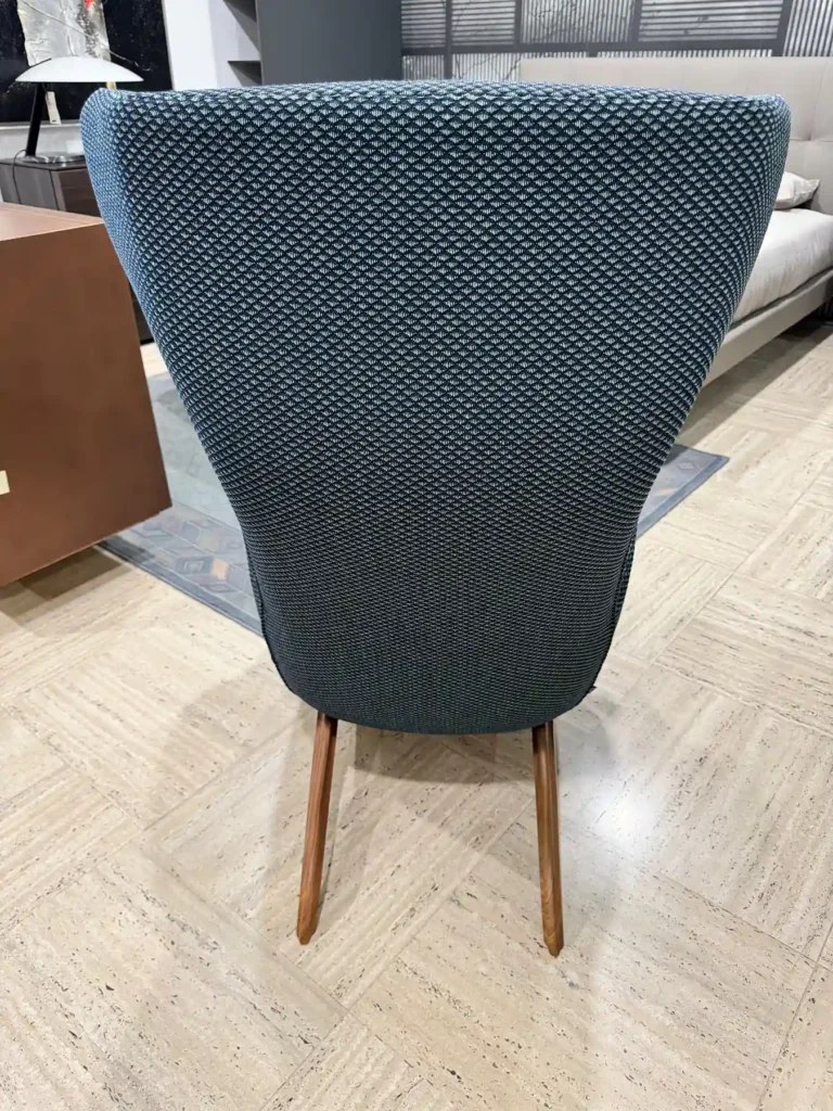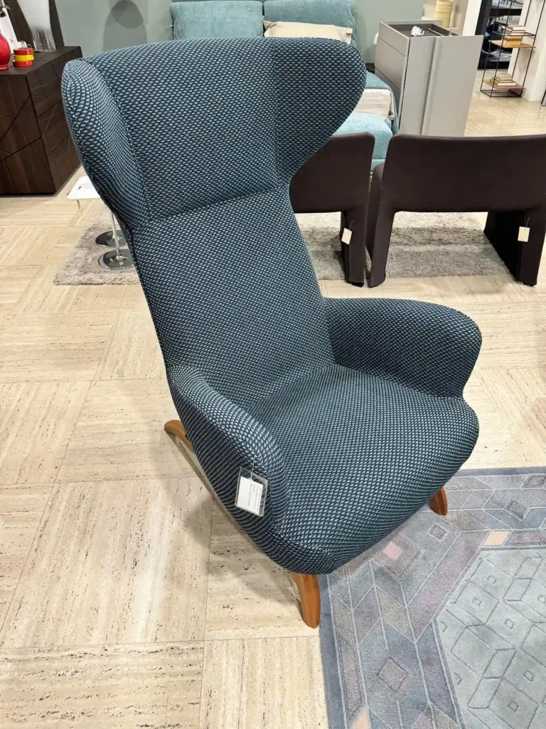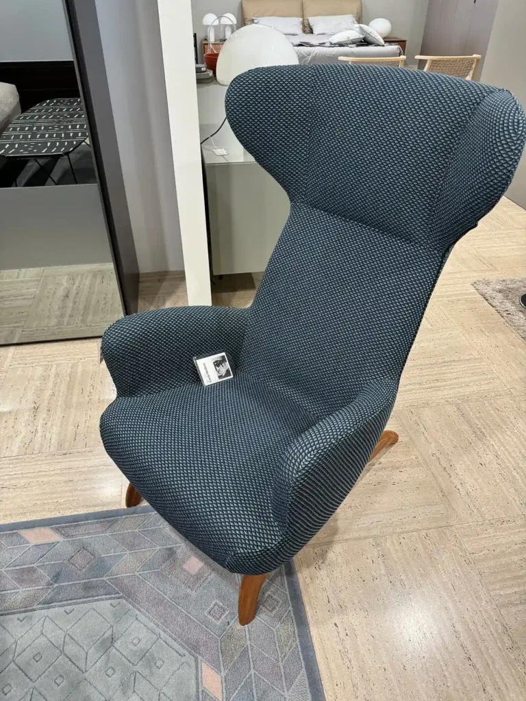 Ardea di Zanotta, progettata da Carlo Mollino nel 1944, รจ unโicona senza tempo del design italiano, prodotta solo a partire dal 1994. Questa seduta, dalla linea unica e inconfondibile, porta con sรฉ un tocco di fantasia e modernitร che la rende attuale anche oggi. La struttura della poltrona รจ realizzata in massello di noce canalettoย con imbottitura in poliuretano su telaio in acciaio. Il rivestimento sfilabile in tessuto di categoria 30 offre una combinazione di comfort e praticitร .
