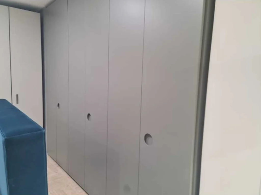 - La maniglia circolare, ricavata nel profilo dell'anta, รจ l'elemento distintivo del design di Eclisse. Questa maniglia non solo offre una presa funzionale, ma crea anche un interessante gioco di luci e ombre, evocando lโeffetto di un'eclisse solare, da cui il nome.