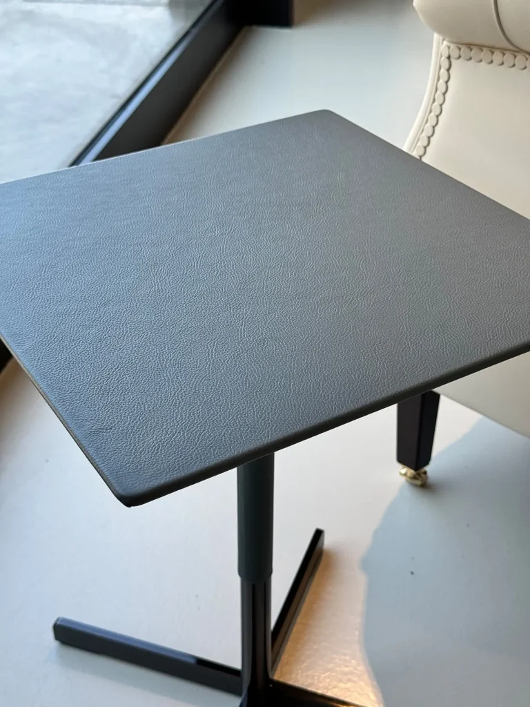 Tavolino arricchito dall'accostamento tra legno, acciaio, e pelle. Base con struttura robusta in canna di fucile, solida e durevole e completo con finitura in pelle Steel Blue che aggiunge un tocco di lusso. Il Tavolino Bob si adatta perfettamente a soggiorni, camere da letto o uffici, grazie alla sua linea semplice ma elegante. La combinazione di materiali nobili lo rende un pezzo versatile che puรฒ arricchire spazi sia classici che moderni, aggiungendo un tocco di stile internazionale.