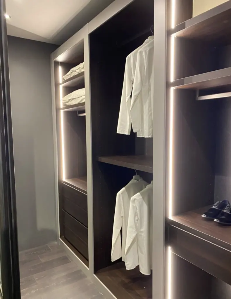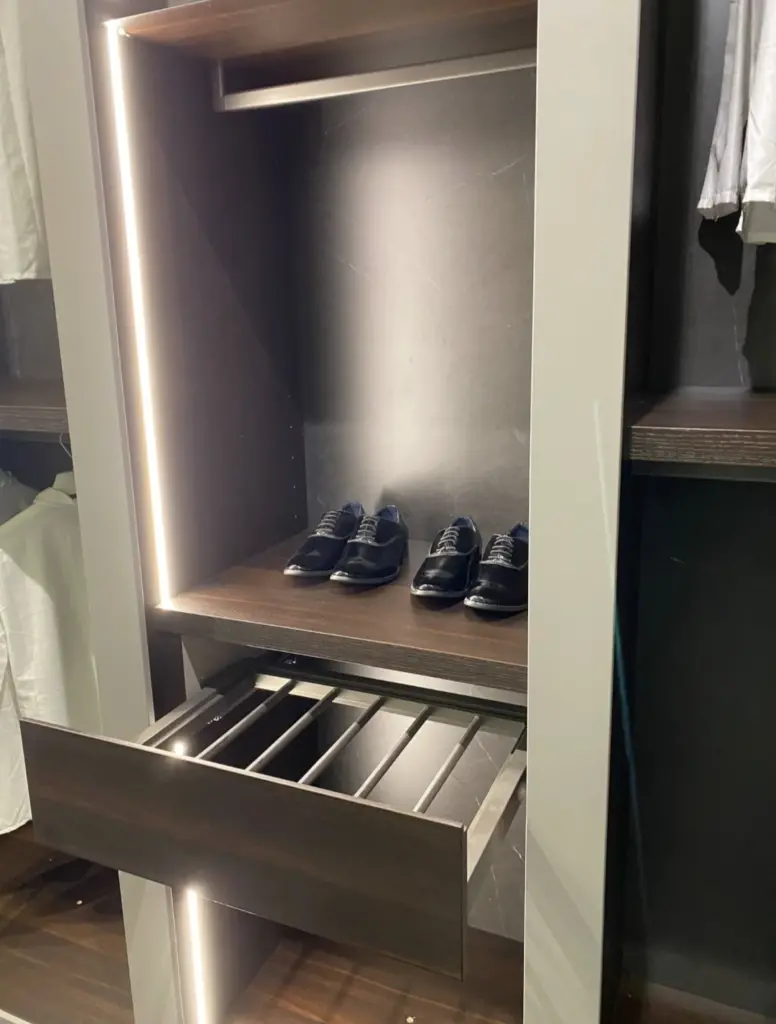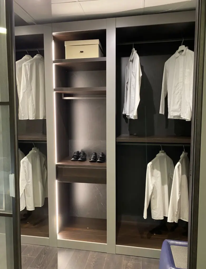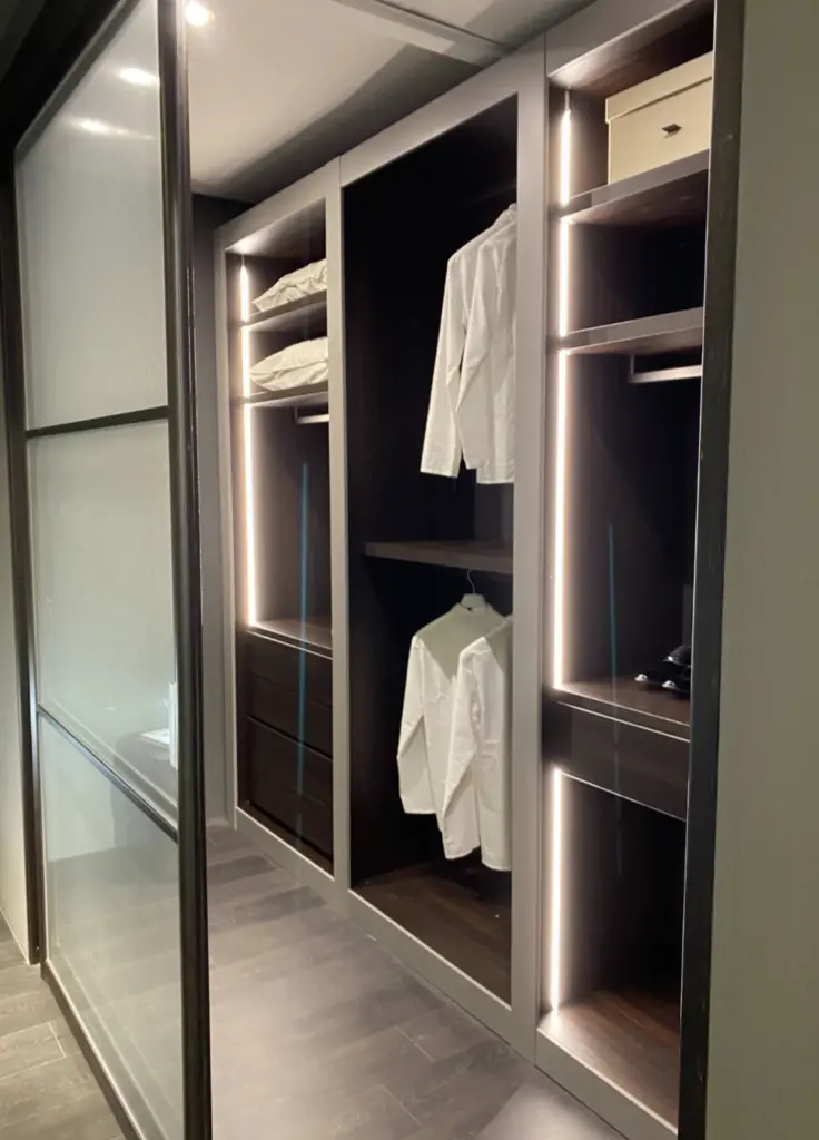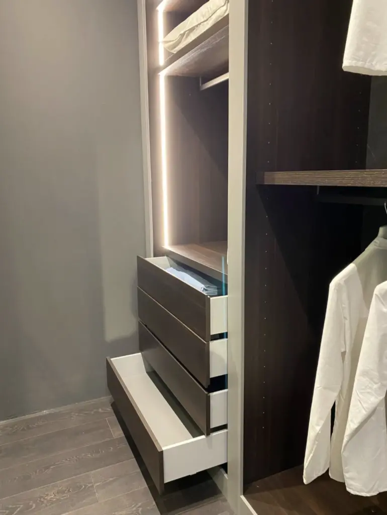 Progettata per soddisfare le esigenze di organizzazione piรน sofisticate, questa cabina armadio offre spazi ben distribuiti per abiti, accessori e altro, rendendola perfetta per qualsiasi camera da letto.