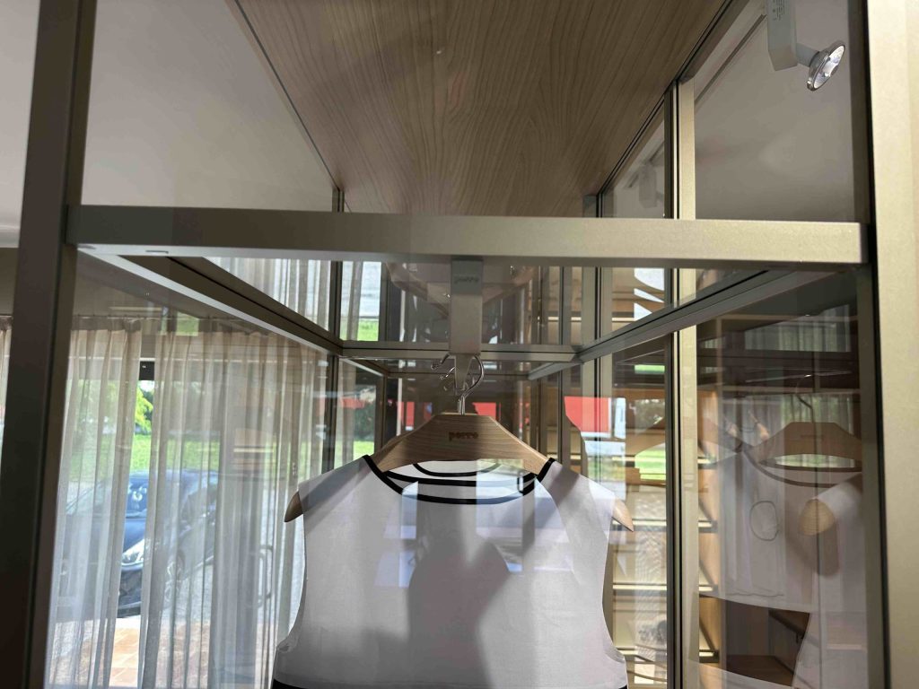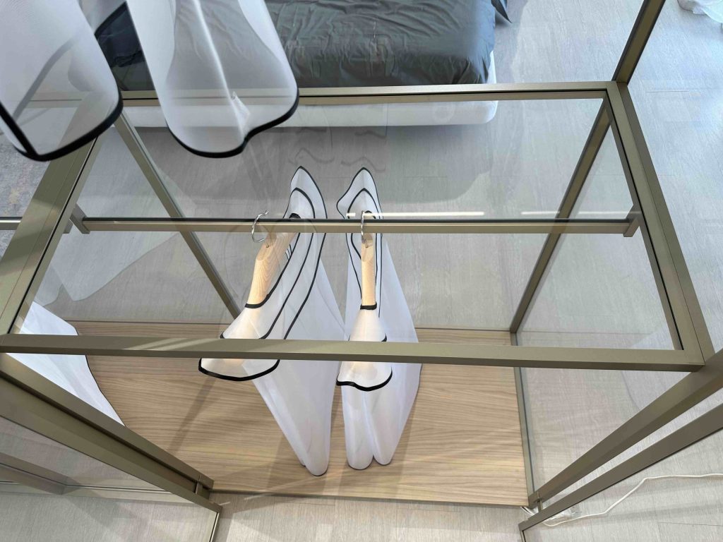 - Funzionalitร avanzata: Ripiani luminosi, scarpiera con inclinazione ridotta e accessori personalizzati, come cassetti con specchio inclinabile, portacravatte, ganci estraibili, vani portaborse e scatole organizzative, rendono Storage Air una soluzione completa.