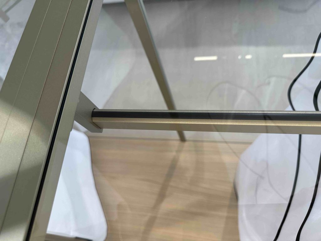 - Montanti autoportanti: Realizzati in profilo continuo chiuso rivestiti in legno mongoi.