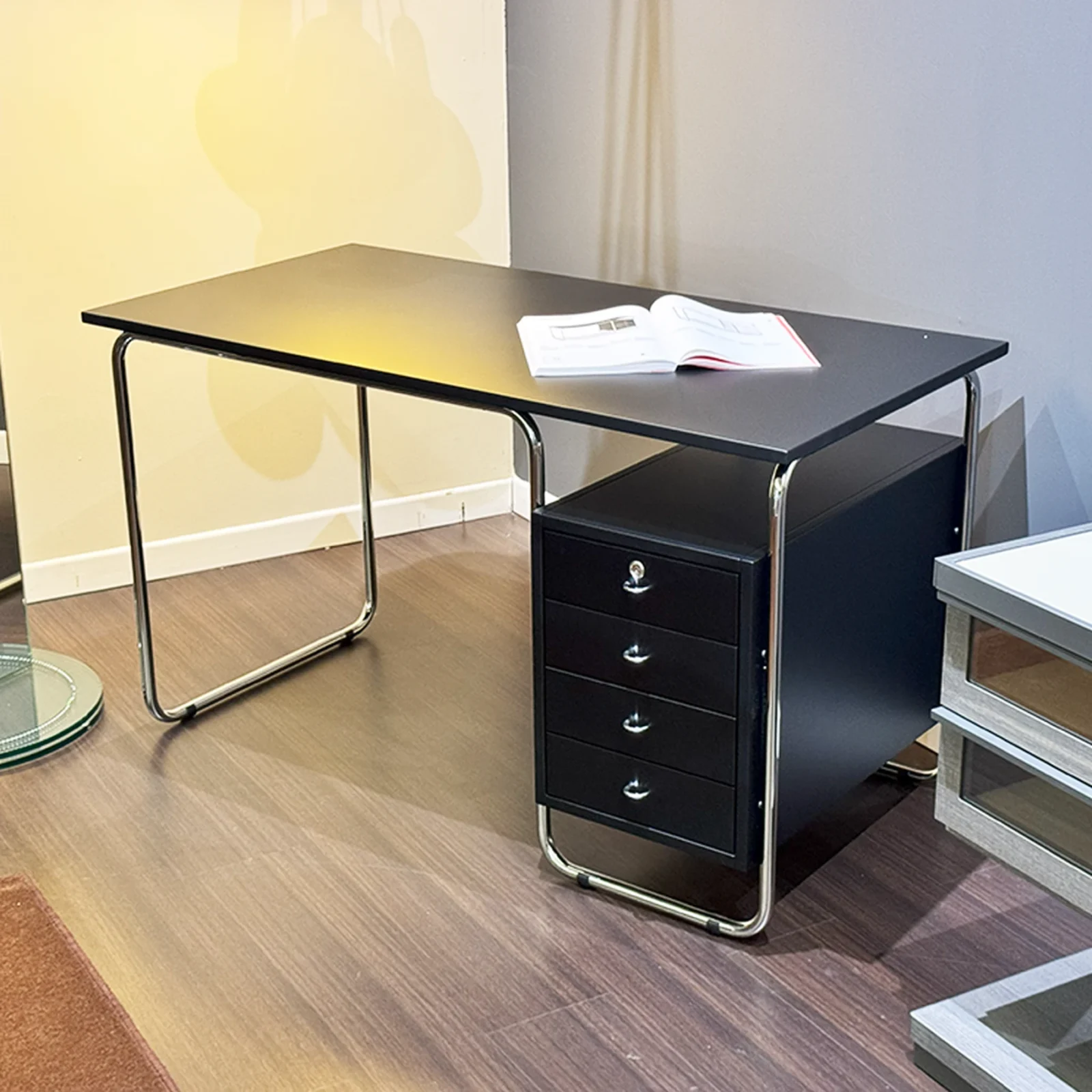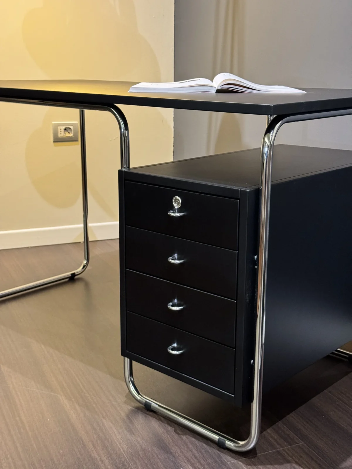 La scrivania Comacina, disegnata nel 1930, combina semplicitร e versatilitร senza tempo. Dotata di una cassettiera a 4 cassetti, posizionabile a destra o sinistra, รจ una soluzione pratica ed elegante per qualsiasi ambiente di lavoro. Il suo design lineare e contemporaneo la rende protagonista indiscussa di studi e uffici, valorizzandoli con stile.