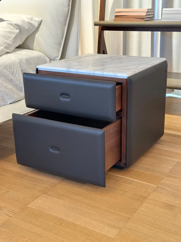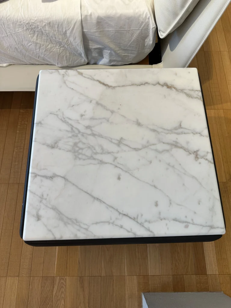 Moondance รจ rivestito a mano in Pelle Frauยฎ, arricchito da una leggera imbottitura che conferisce un aspetto unico. Il top รจ disponibile inย marmo Calacatta Oro con una finitura semilucida che ne esalta la bellezza naturale.