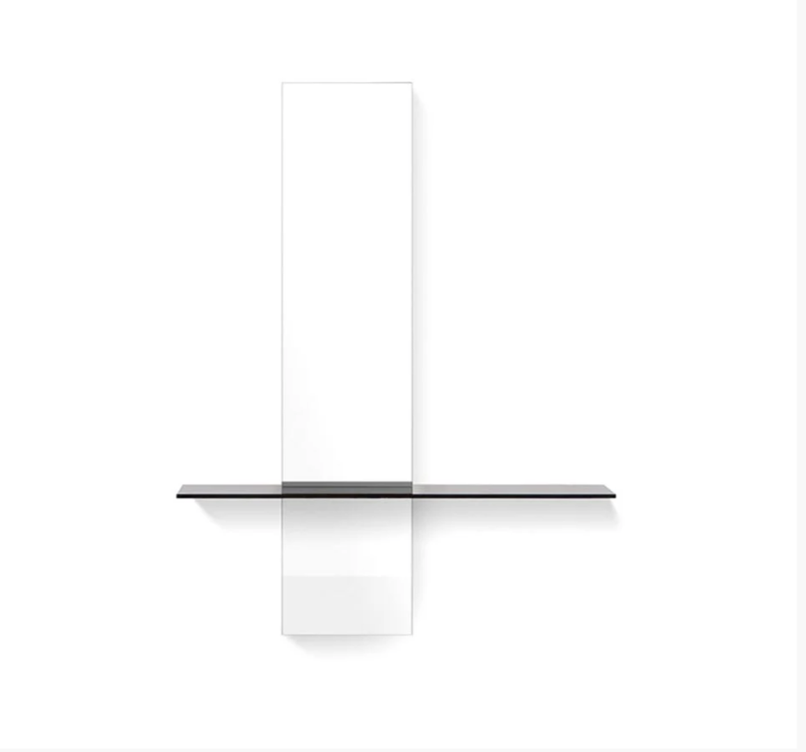 Fin dal primo sguardo, la Consolle Peak si distingue per il grande specchio rettangolare che amplifica la luminositร dellโambiente e dona profonditร agli spazi. Lโinterruzione del volume verticale รจ affidata al ripiano in vetro nero spessore 10 mm, un dettaglio che aggiunge contrasto e un carattere moderno. Il risultato รจ un arredo versatile, elegante e immediatamente riconoscibile.