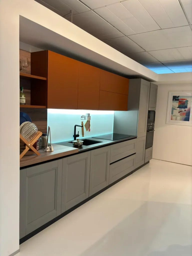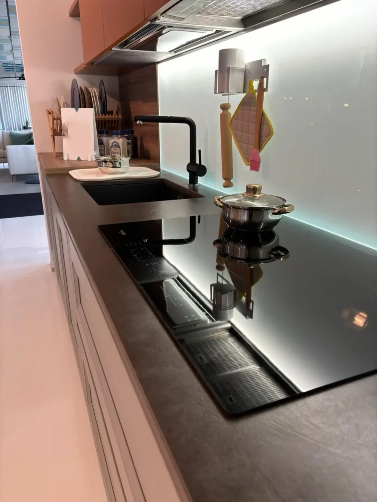 - Schienale: Vetro retroilluminato, che dona un aspetto elegante e luminoso alla cucina, creando un effetto scenografico.