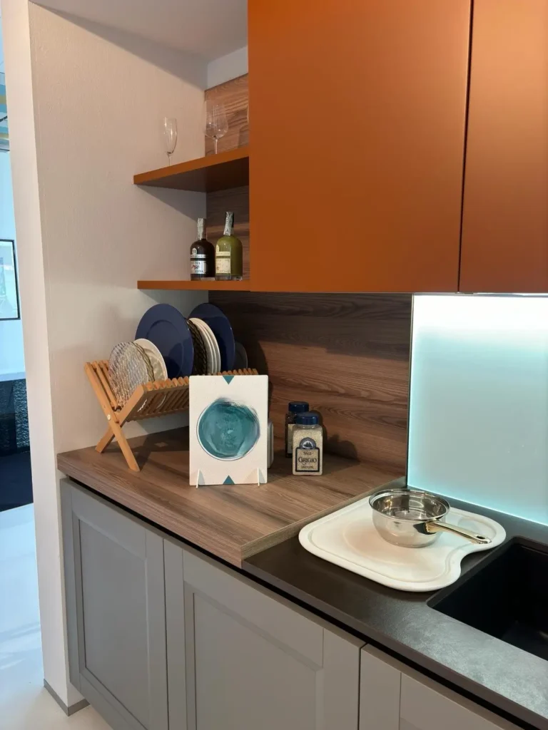 - Pannelli: In legno, che completano la cucina conferendo un contrasto naturale ed elegante.