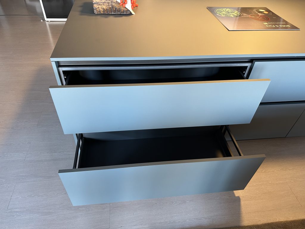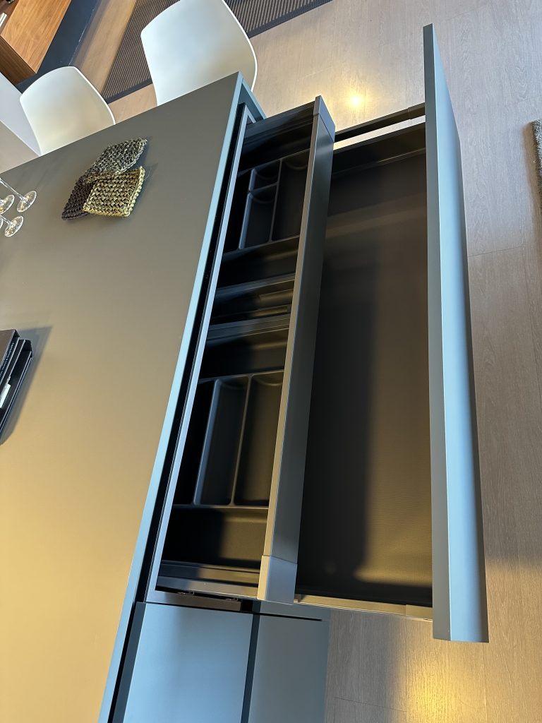 • Materiale pregiato: Frontali e piano realizzati in Fenix Verde Commodoro, un materiale innovativo noto per la sua resistenza, lโ€™aspetto opaco e la morbidezza al tatto, oltre alla facilitร  di manutenzione.