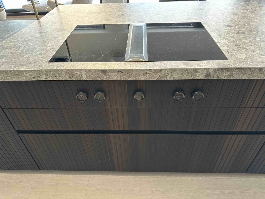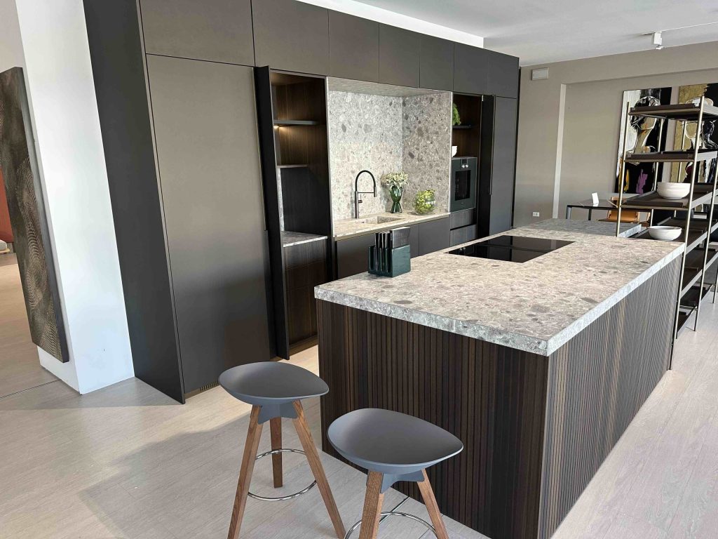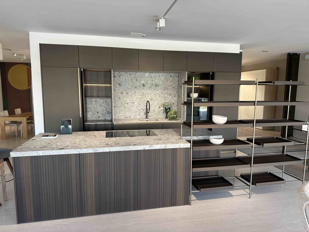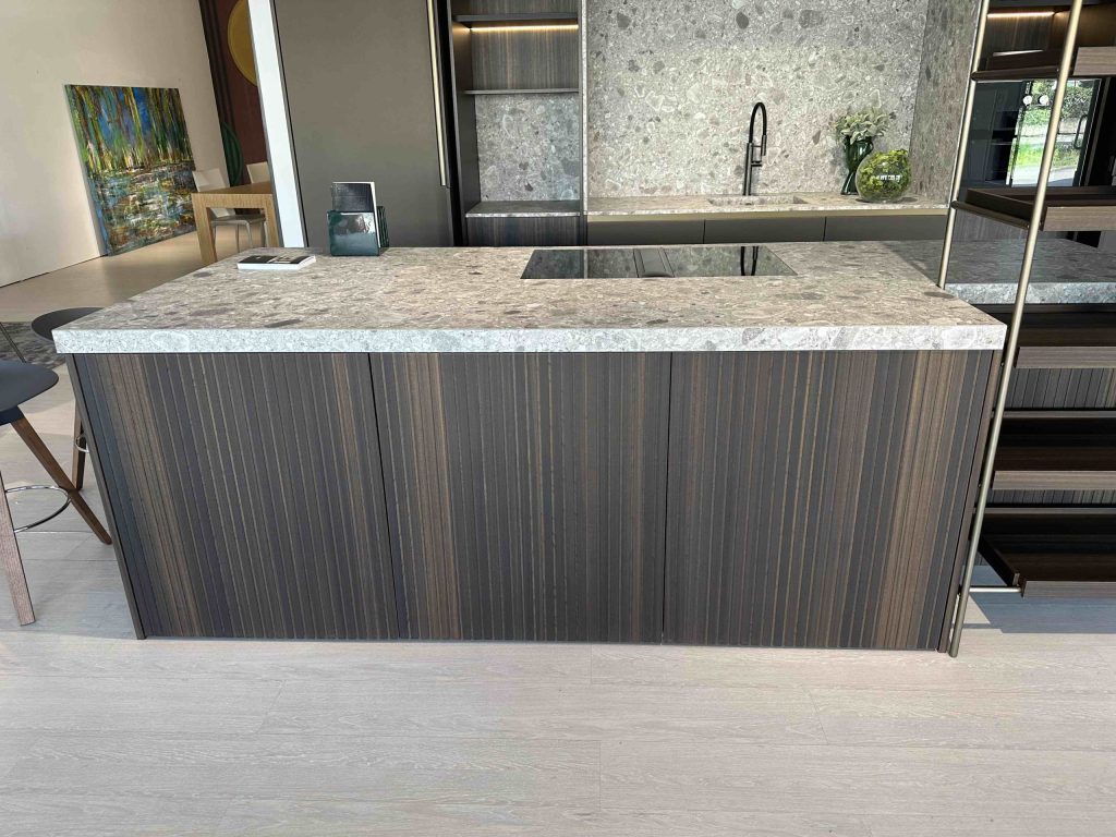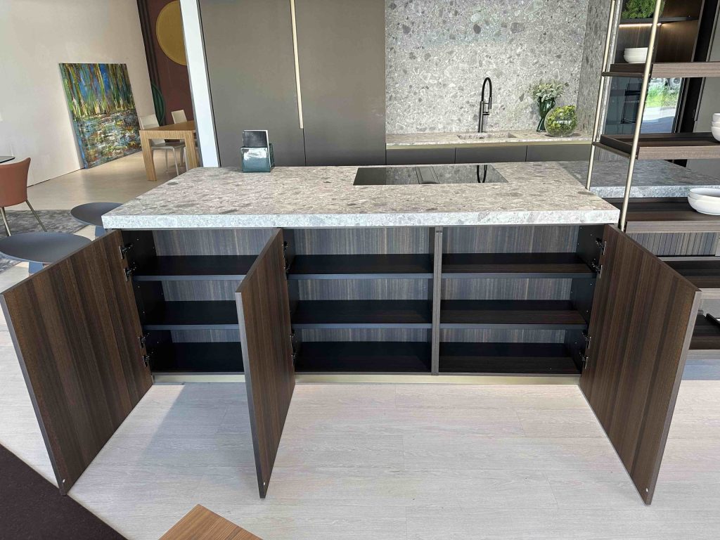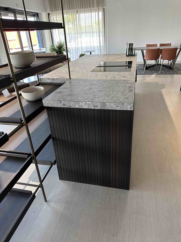 - Configurazione con isola: Lโisola centrale dalle dimensioni L 305 x P 120 x H 92 cm offre ampio spazio per cucinare e socializzare, combinando praticitร e design.