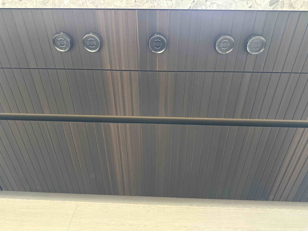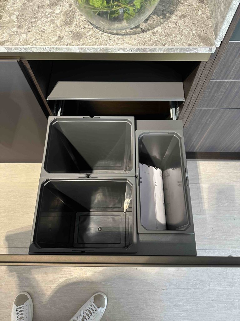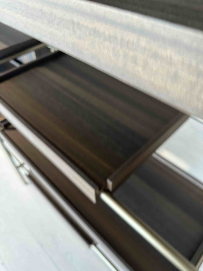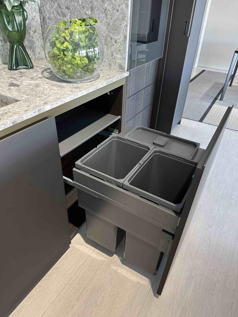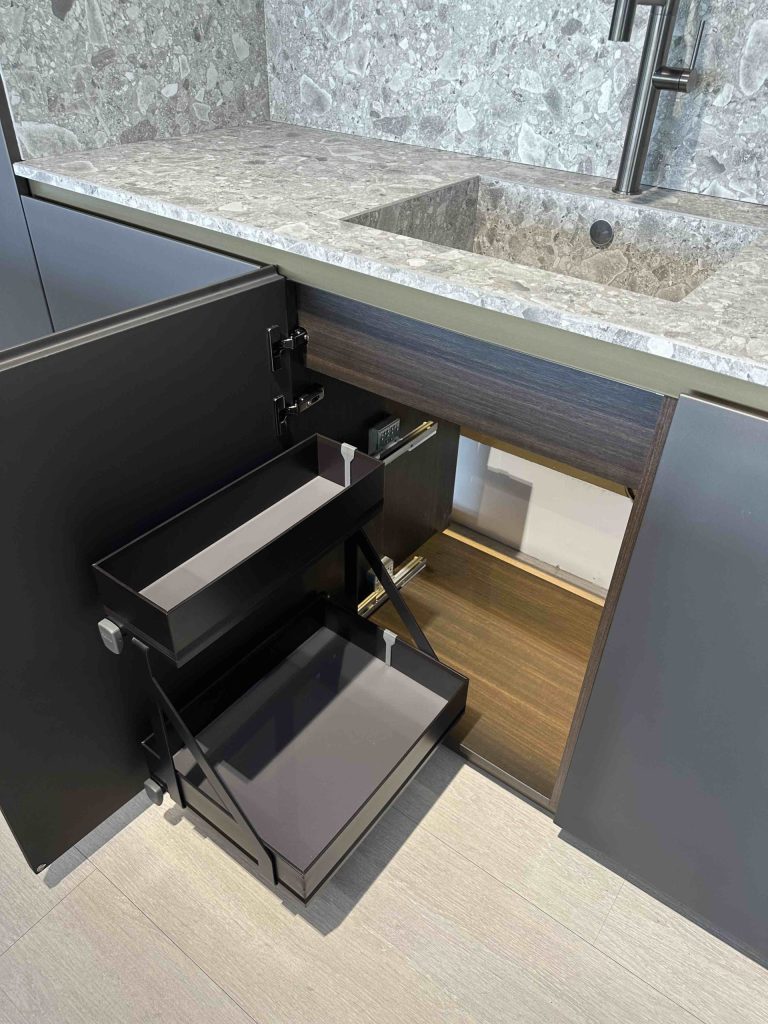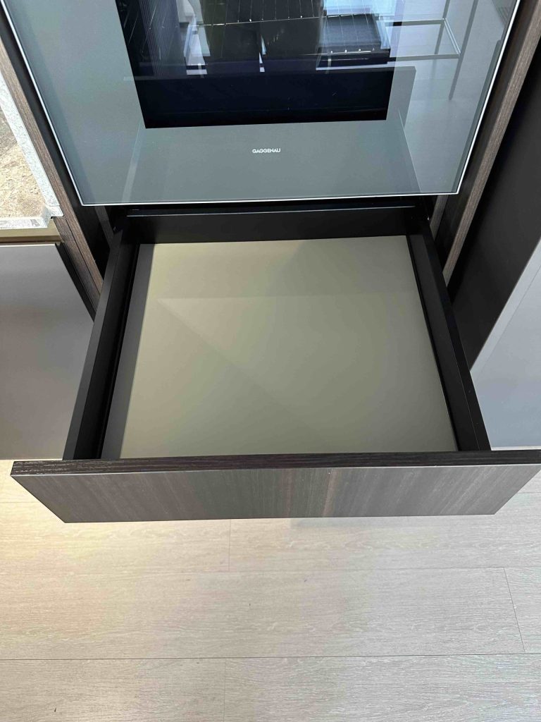 - Ante laccate: Finitura in Hibryd Bronzo Scuro e legno di eucalipto fumรจ dogato, che donano un look contemporaneo ed elegante.