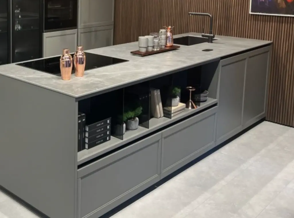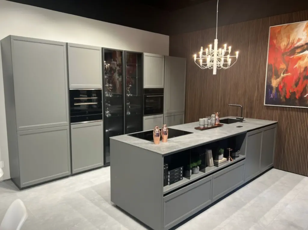 La Cucina Box 2 Flavour Neck nella finitura grigio quarzo opaco combina design deciso e funzionalitร  avanzata. Linee essenziali e... Leggi di piรน
