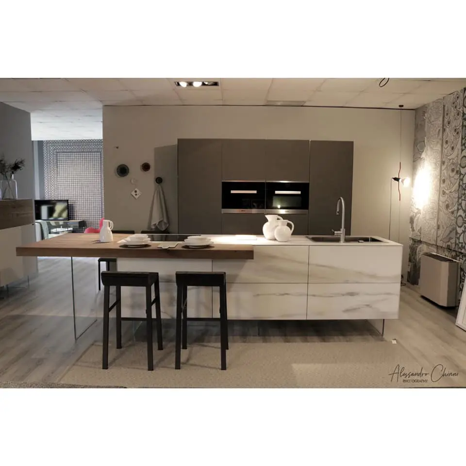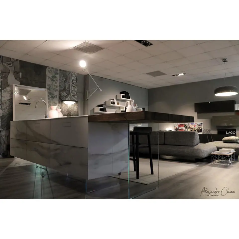 CUCINA LAGO MODELLO 36&8 ISOLA L.357 ร P.110 ร H.95 cmComposta da basi in appoggio su sostegni in vetro temperato... Leggi di piรน