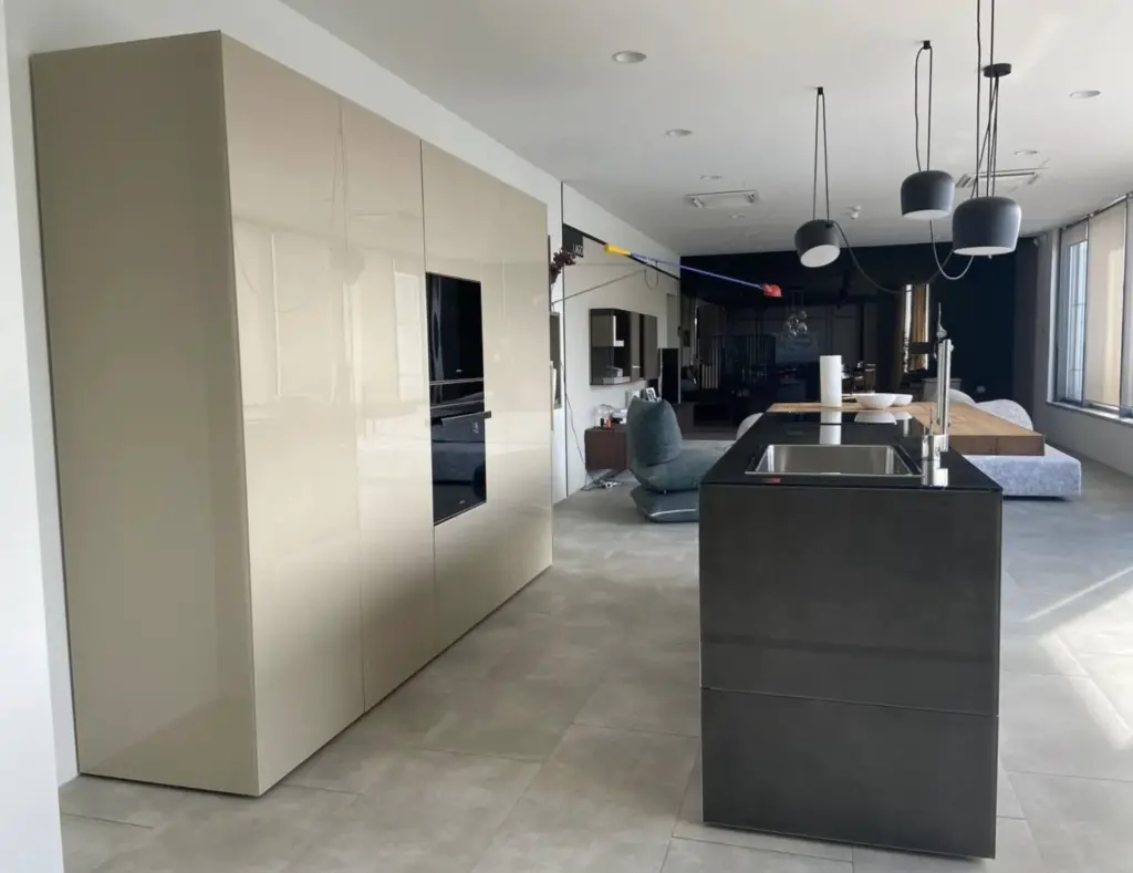 Cucina Lago con isola modello 36E8 in offerta outlet La cucina 36E8 di Lago si distingue per il suo design... Leggi di piรน
