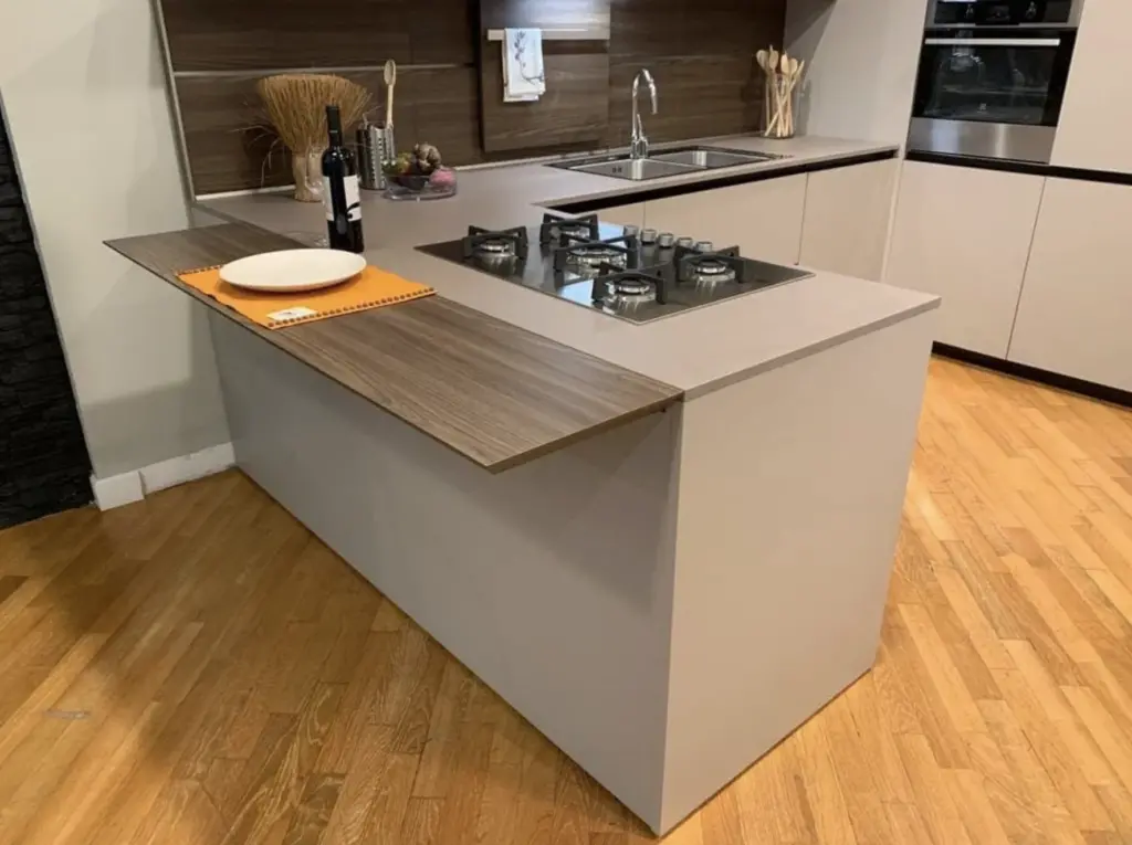 - Penisola: L 200 cm x H 88 cm x P 76,3 cm, ideale per colazioni veloci o come area di lavoro aggiuntiva.