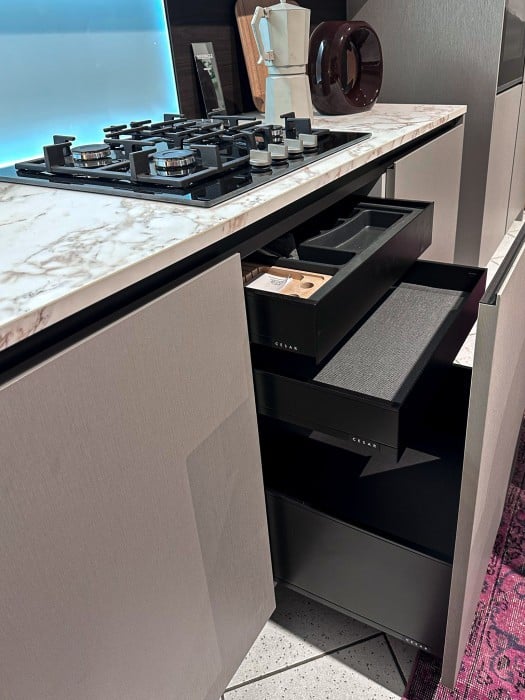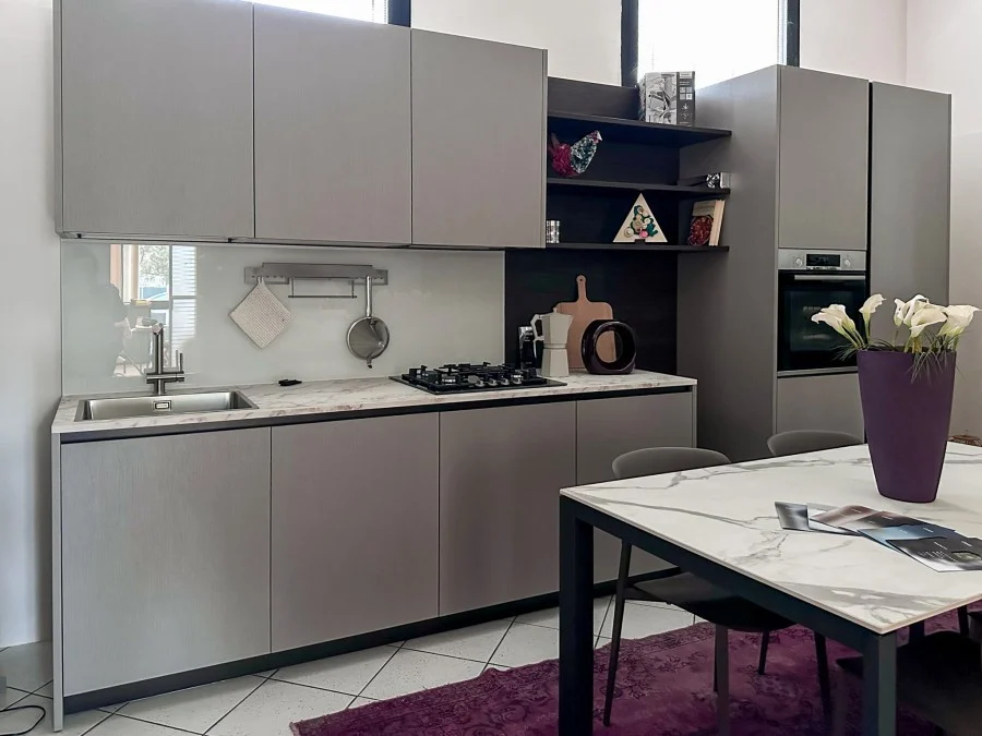 La cucina Maxima 2.2 di Cesar รจ una soluzione moderna e altamente personalizzabile, pensata per adattarsi alle esigenze contemporanee di funzionalitร  ed estetica. Con il sistema progettuale flessibile e la presa Frame per un design pulito, questa cucina รจ perfetta per ambienti eleganti e moderni. Le ante da 22 mm di spessore con triplice cerniera assicurano una lunga durata e resistenza, confermando la soliditร  del prodotto.