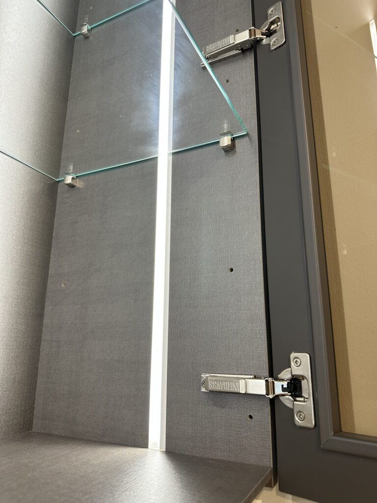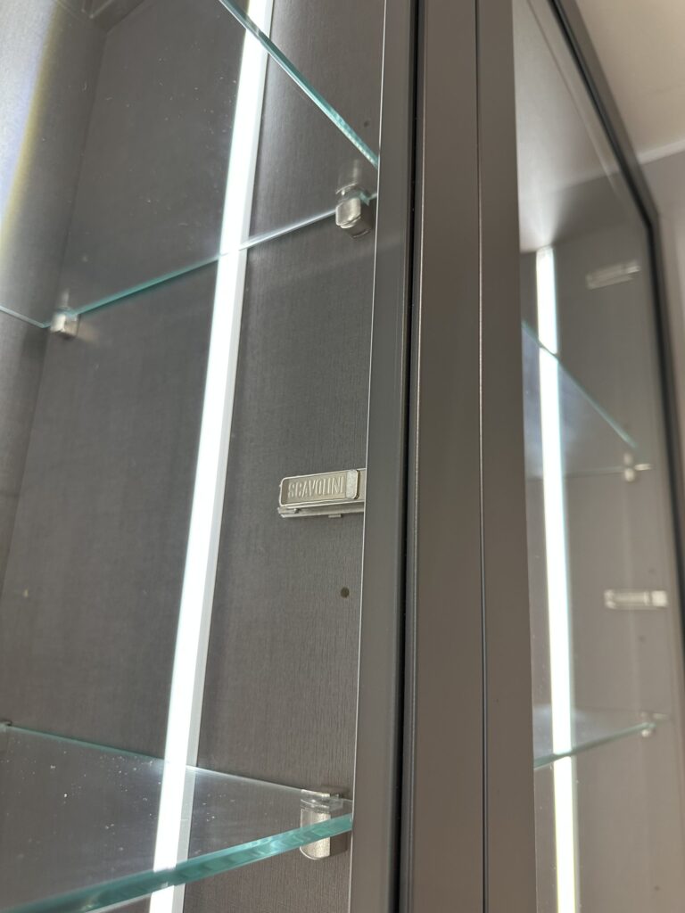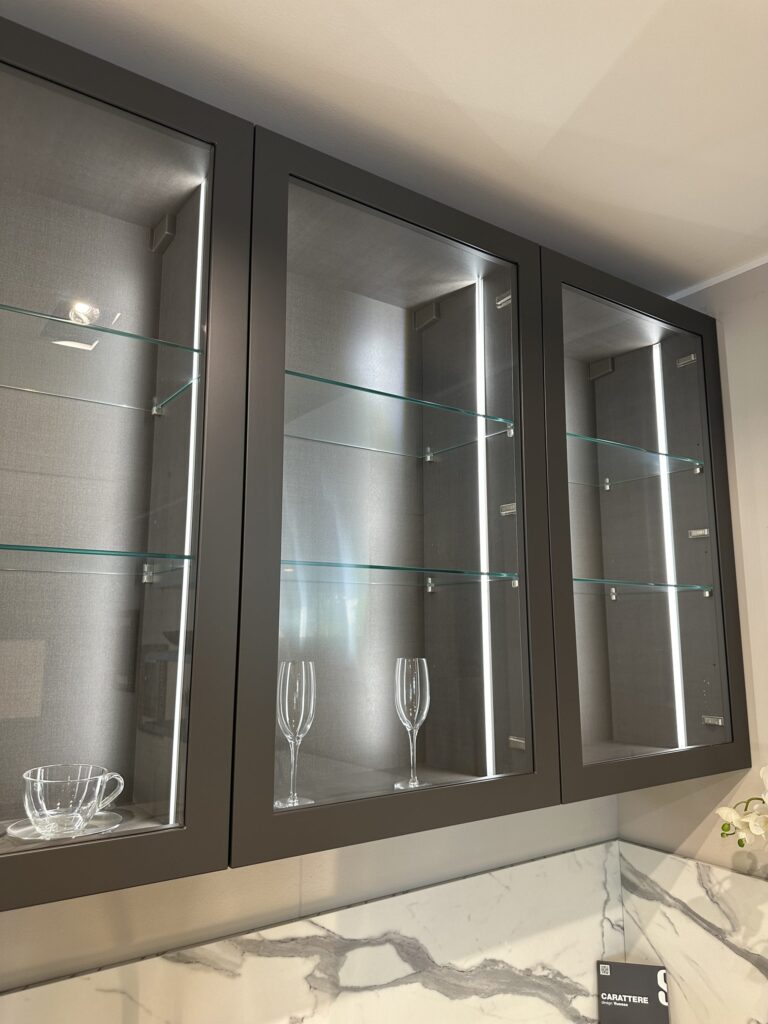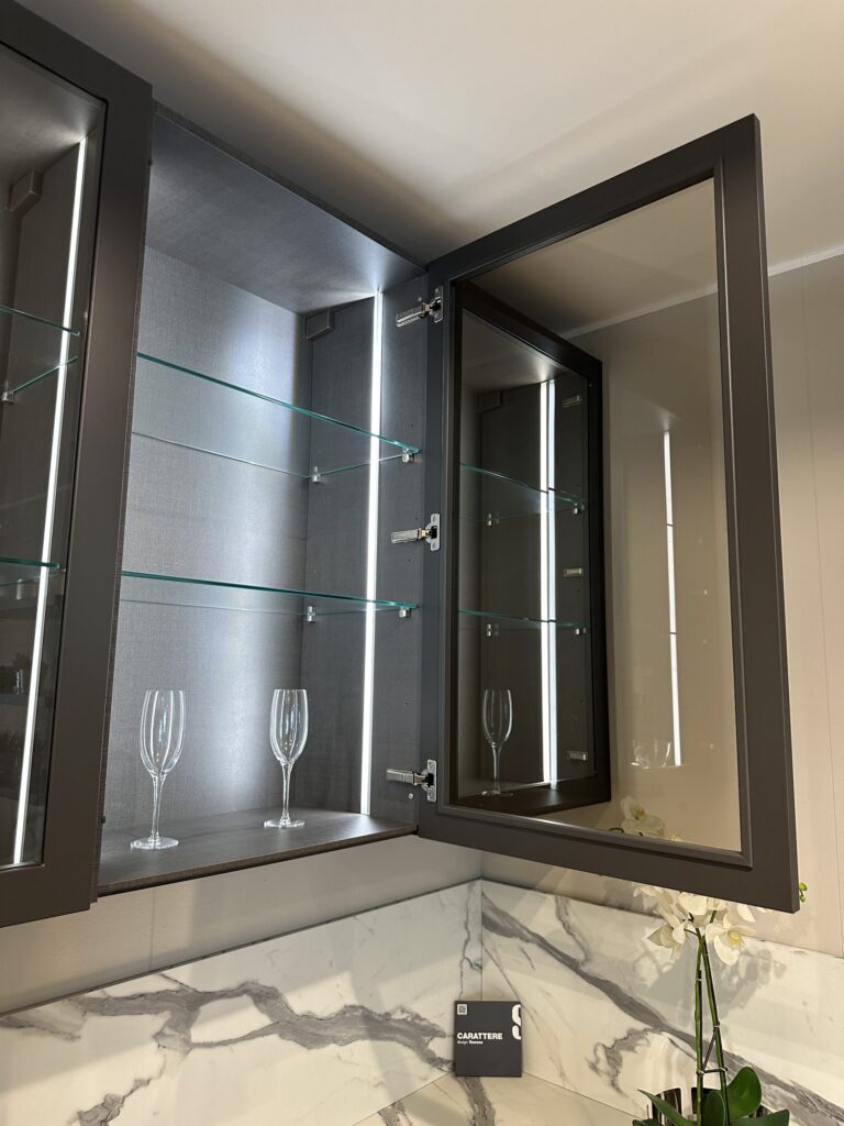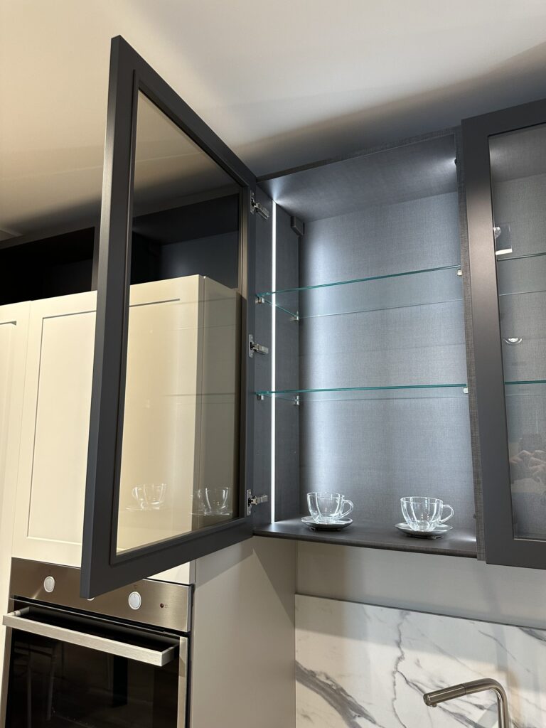 - Illuminazione LED integrata nei pensili con ante in vetro.