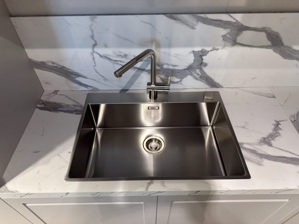 - Lavello a filo in acciaio inox Franke, con una vasca.