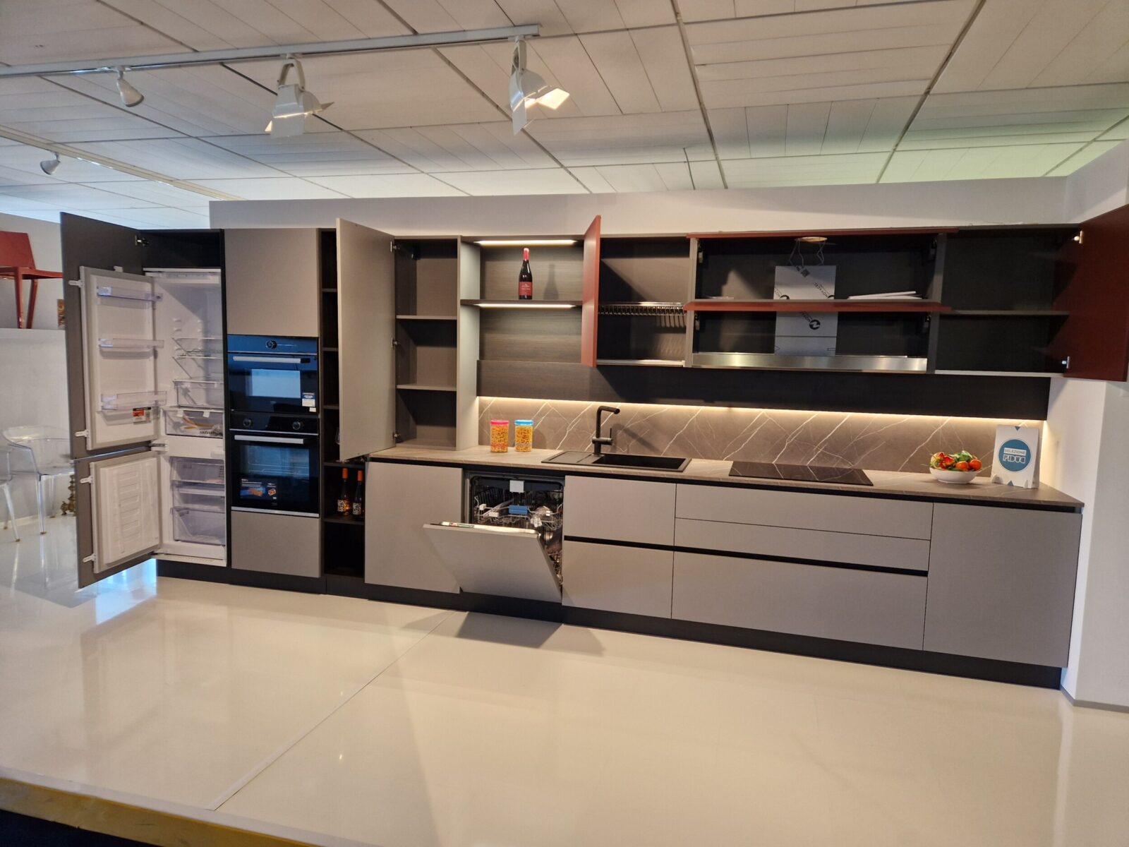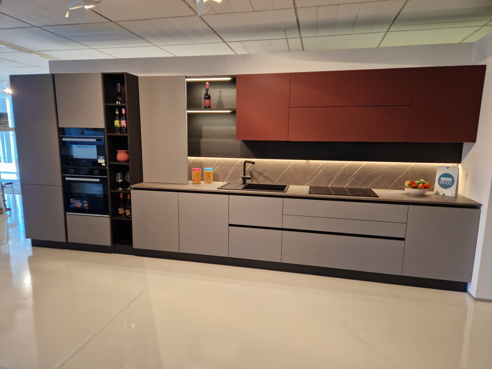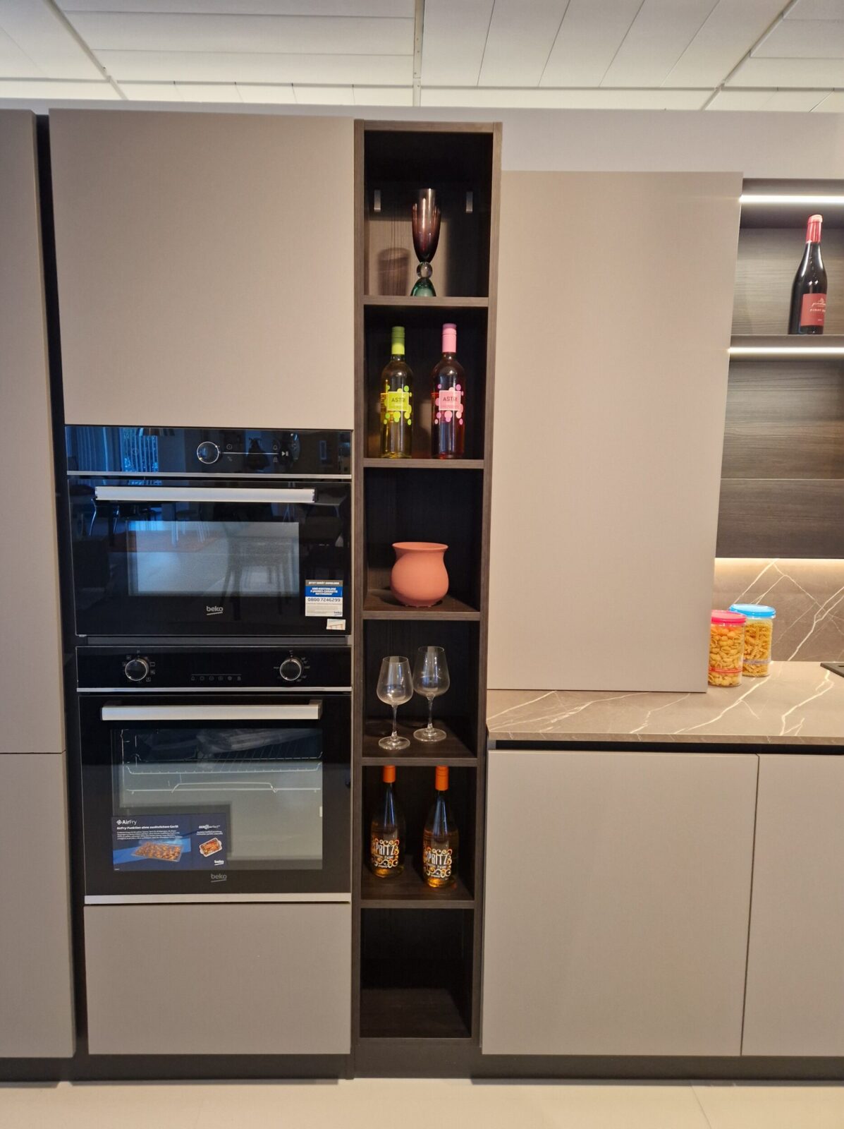 Caratteristiche principali: Materiali: Laccato opaco MADERA, laccato opaco GRIGIO OPACO , elementi OPEN ROVERE BRITISH Misure: La cucina ha una... Leggi di piรน