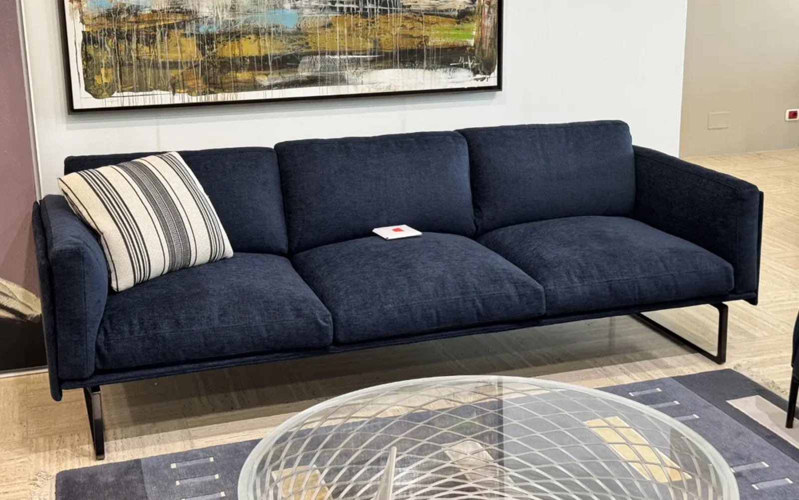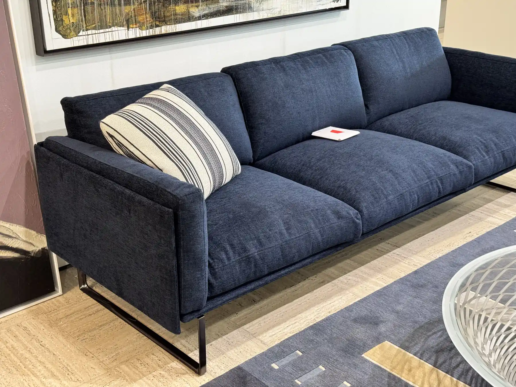 • Rivestimento: I cuscini, schienali e braccioli sono interamente sfoderabili e disponibili in tessutoย Luxor Blu Notte.