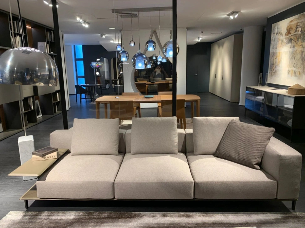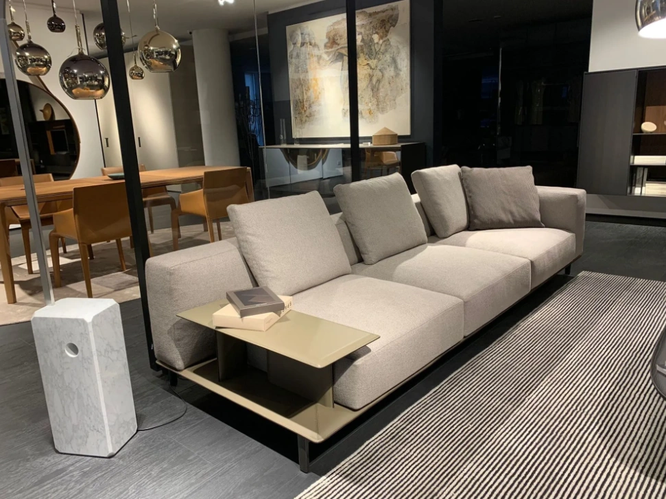 Il divano Brera รจ rivestito in tessuto molai color tortora, che conferisce un look elegante e moderno. Il basamento in... Leggi di piรน