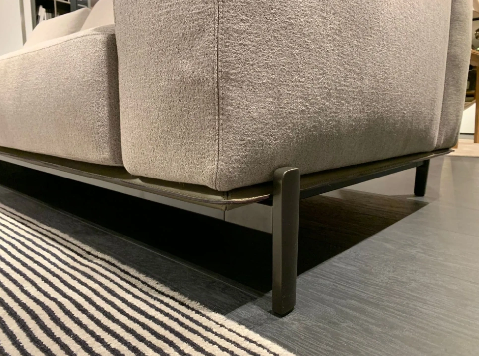 Il divano Brera รจ rivestito in tessuto molai color tortora, che conferisce un look elegante e moderno. Il basamento in cuoio color fango e la finitura dei piedi in black nickel opaco aggiungono un tocco di lusso senza tempo. Questo divano รจ ideale per trascorrere piacevoli momenti di relax in famiglia o con gli amici, offrendo comfort e stile in un unico pezzo d'arredamento.