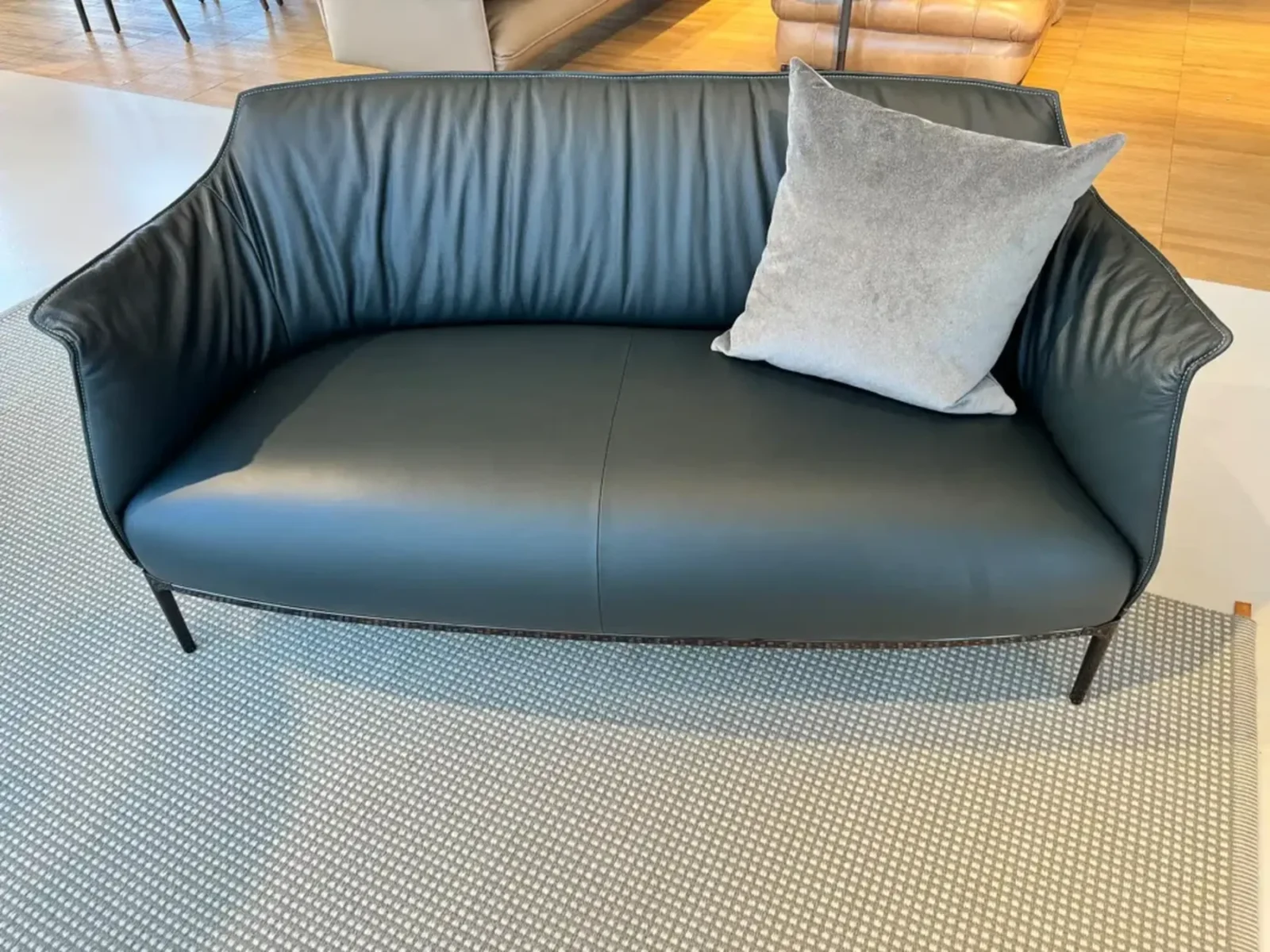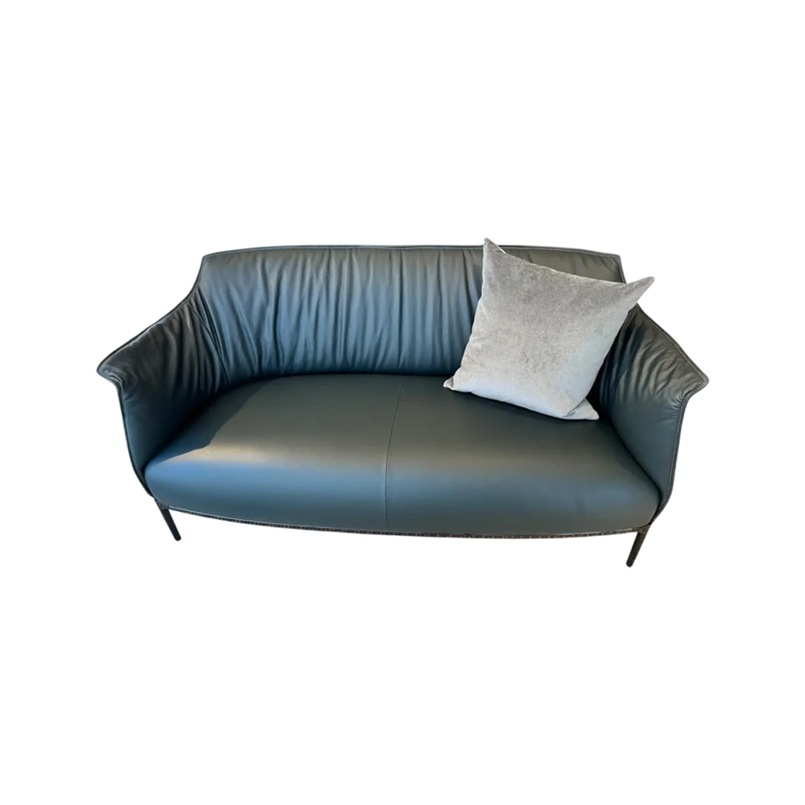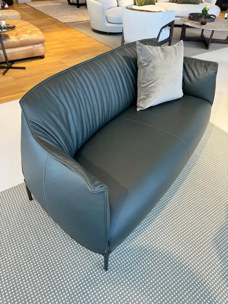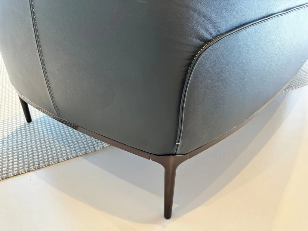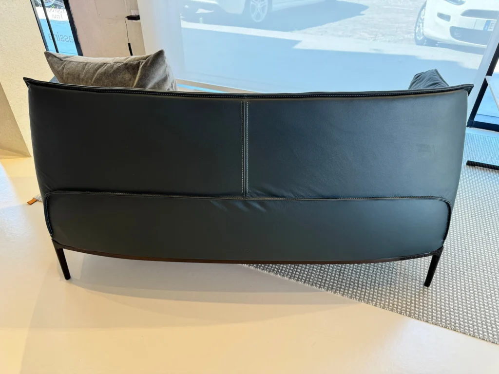 In questa configurazione, il divano รจ rivestito in Pelle SC 209 Cypress, una tonalitร profonda ed elegante che esalta la tridimensionalitร delle superfici. Il basamento in finitura canna di fucile completa lโinsieme con un accento contemporaneo e raffinato, creando un equilibrio armonioso tra materia e struttura.