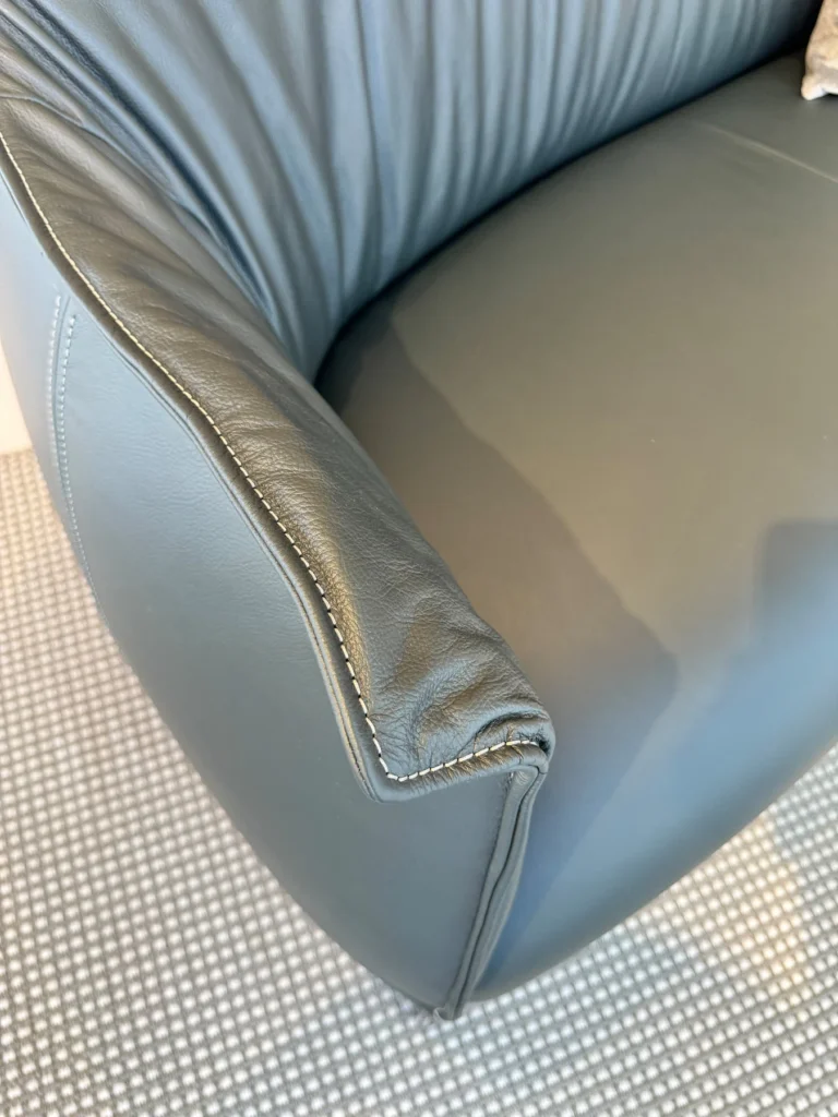 La struttura interna in acciaio garantisce soliditร e durata, mentre lโimbottitura in poliuretano espanso sagomato, arricchita da uno strato di ovatta nelle zone di maggiore comfort, offre una seduta avvolgente e rilassante. Il disegno fluido รจ valorizzato da cuciture a contrasto, dettaglio distintivo della collezione che ne sottolinea il carattere artigianale.