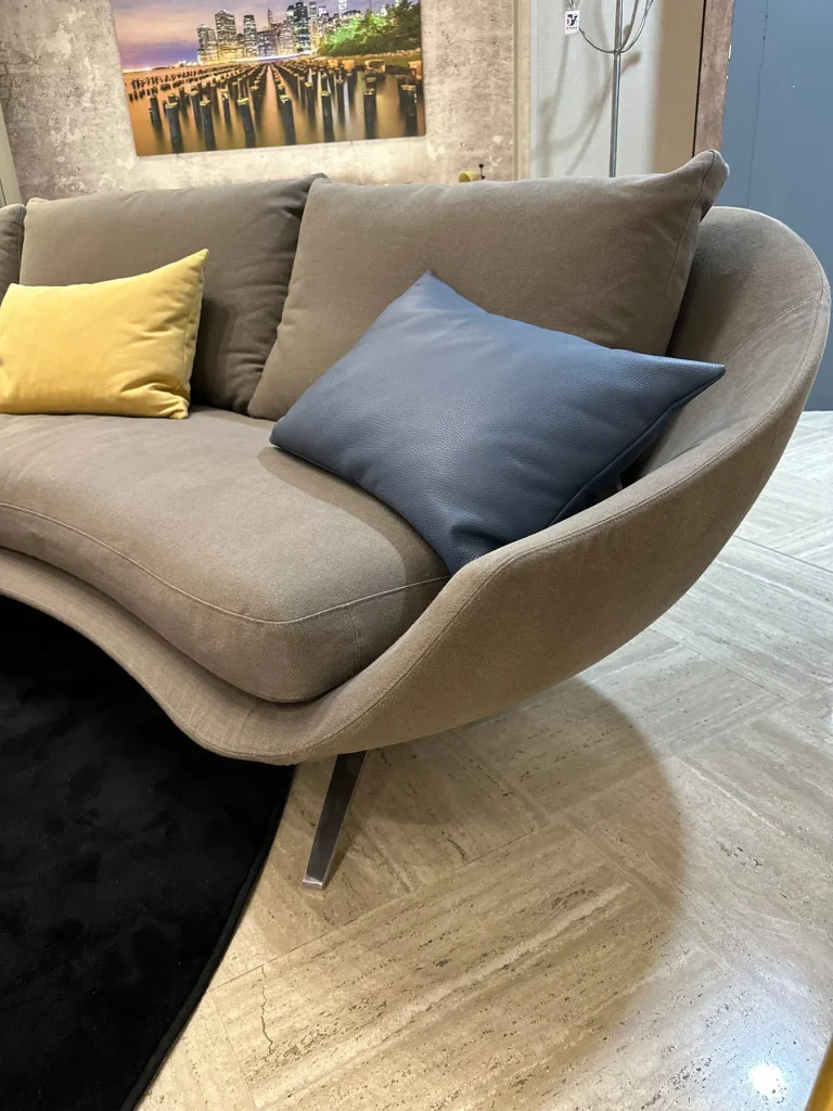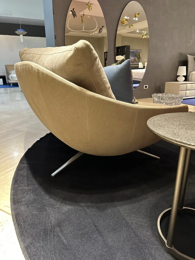 Il divano Avì, disegnato da Jai Jalan per Désirée, è un capolavoro di design sospeso e sinuoso, che richiama la forma di un guscio avvolgente. La leggera curvatura di seduta e schienale è studiata per favorire un dialogo piacevole tra le persone, creando un'atmosfera intima e rilassante.