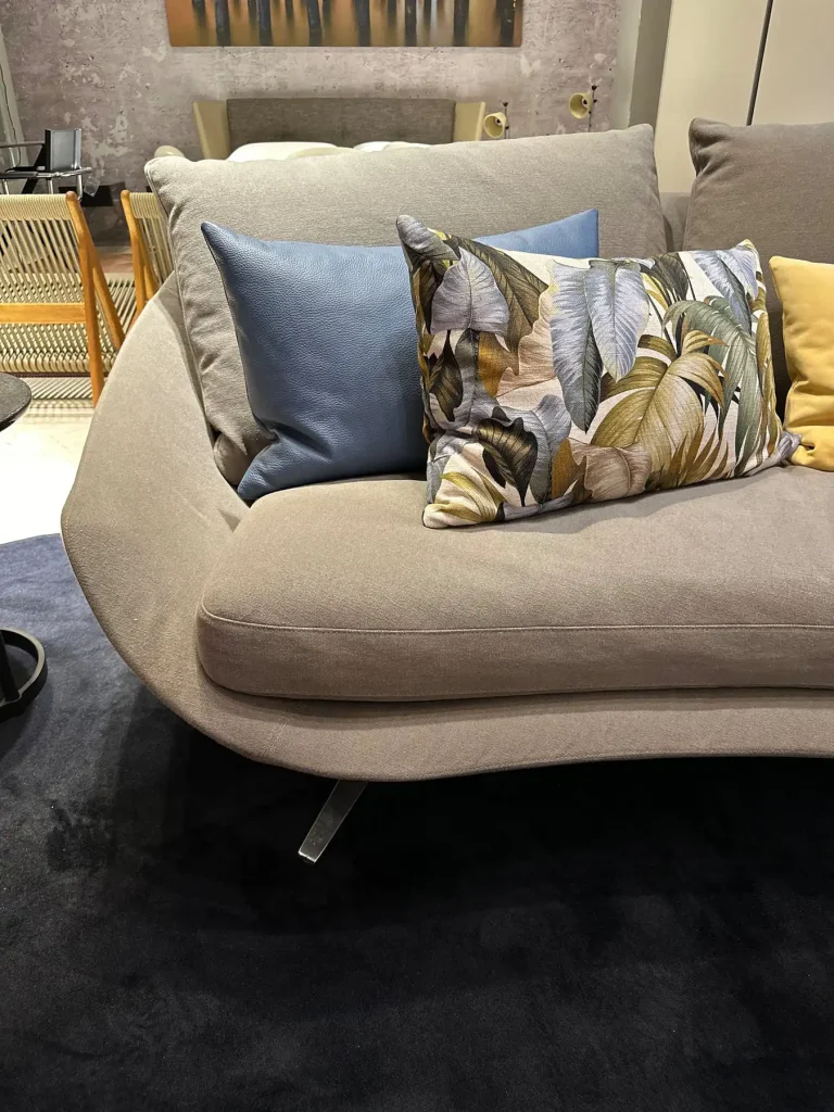 Realizzato con una struttura interna in metallo, Avì si distingue per la sua base elegante, disponibile in metallo verniciato bronzo brill, che aggiunge un tocco sofisticato e contemporaneo al design complessivo. Il rivestimento, in tessuto, è completamente sfoderabile, rendendo il divano pratico e facile da mantenere.