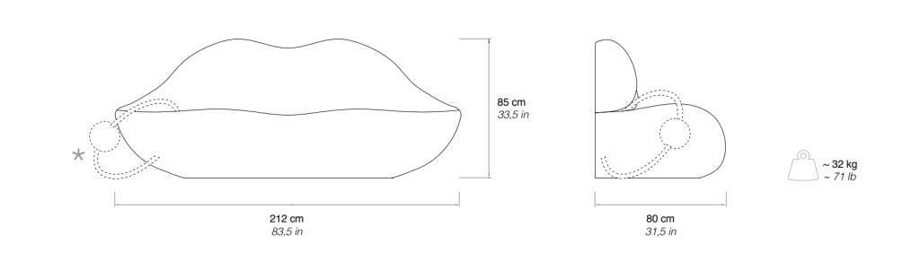 - Ispirato all'arte surrealista e pop, il divano richiama le labbra sensuali di Marilyn Monroe, trasformando un elemento di arredo in unโopera dโarte.