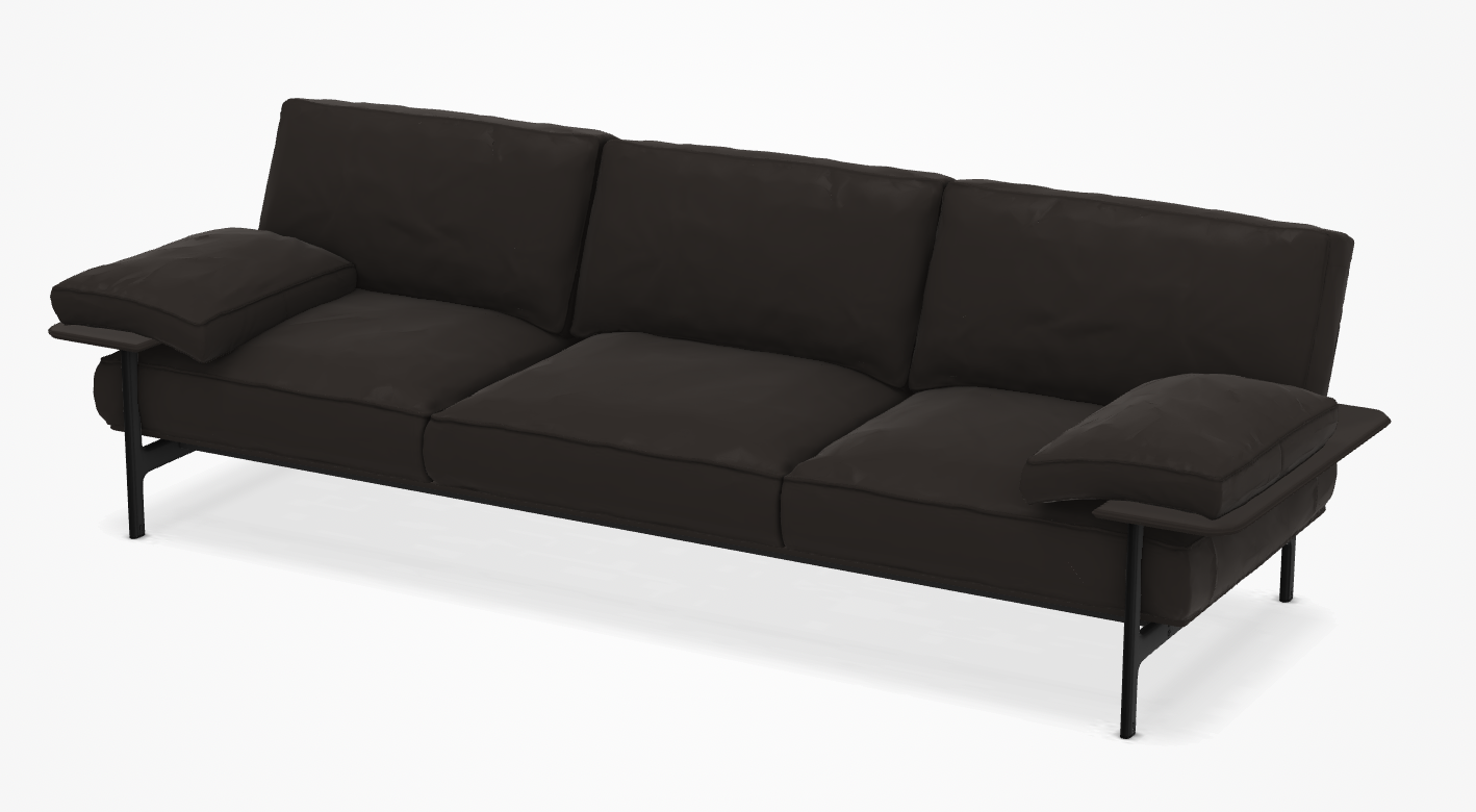 In questa versione, con rivestimento in pelle GM111 Gamma Lavagna e struttura verniciata cromato nero (0170M), il Diesis esprime unโeleganza raffinata e un comfort assoluto. Le dimensioni (L277รP95รH80 cm) offrono proporzioni bilanciate e una seduta accogliente, ideale per spazi living di grande classe.