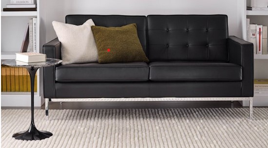 Le sue linee geometriche e libere sono espressione dell'approccio razionale al design che Florence Knoll ha appreso dal suo mentore, Mies van der Rohe. La base cromata a vista e la pelle nera conferiscono un aspetto all'avanguardia, rendendo questo divano un pezzo iconico e versatile per qualsiasi ambiente.