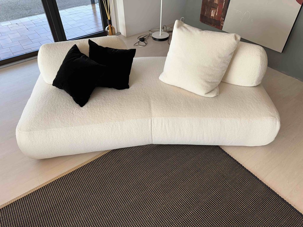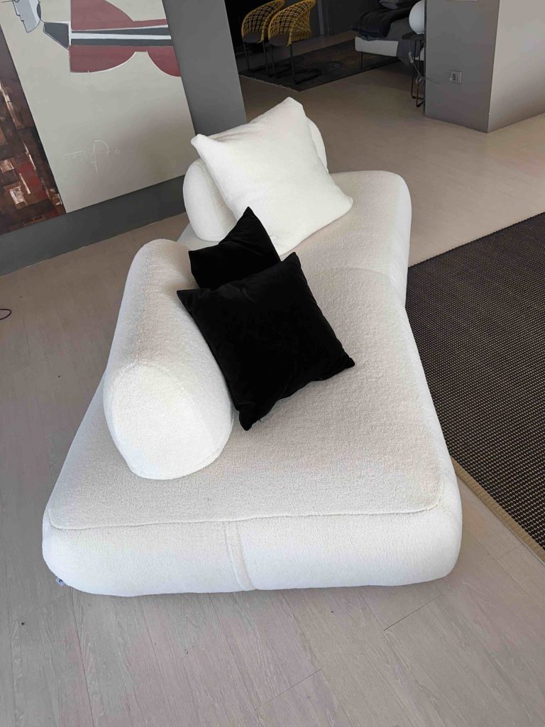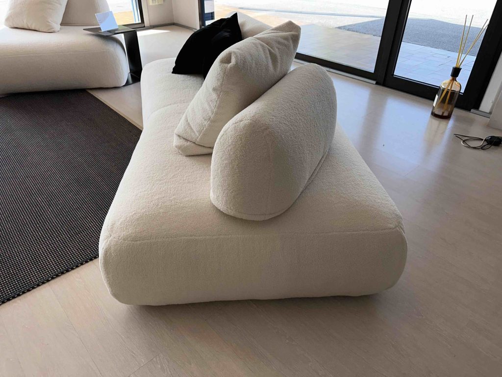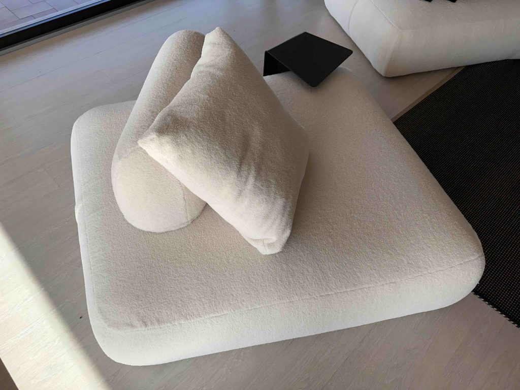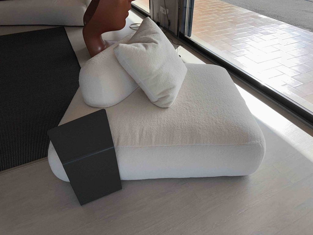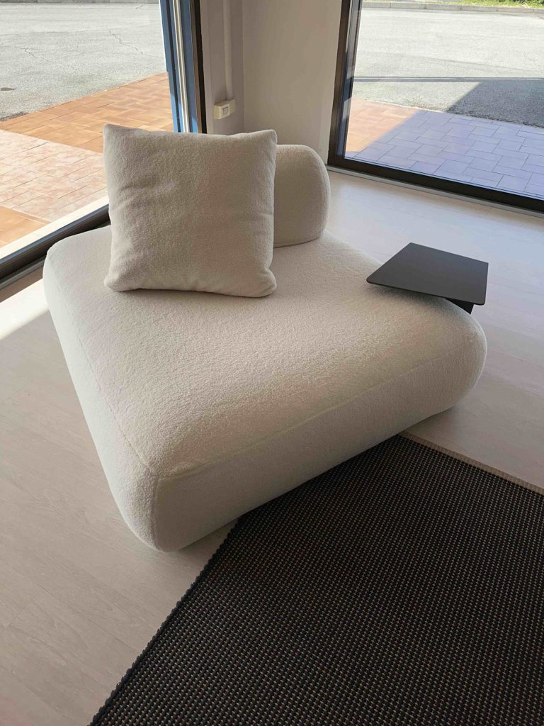 Il divano Grecale della collezione Il Giorno di Fox รจ un perfetto esempio di design moderno ed elegante, dove il fascino delle forme morbide e curve si combina con la praticitร del comfort. Con una base semicurva e una base trapezoidale rivestita in tessuto teddy 19 avorio, il divano offre un'esperienza visiva unica. Gli schienali trapezoidali e i cuscini a sacchetto aggiungono un ulteriore livello di comfort e di eleganza al design complessivo. Questo divano rappresenta unโidea di stile fresco e ricercato, ma allo stesso tempo chic e essential.