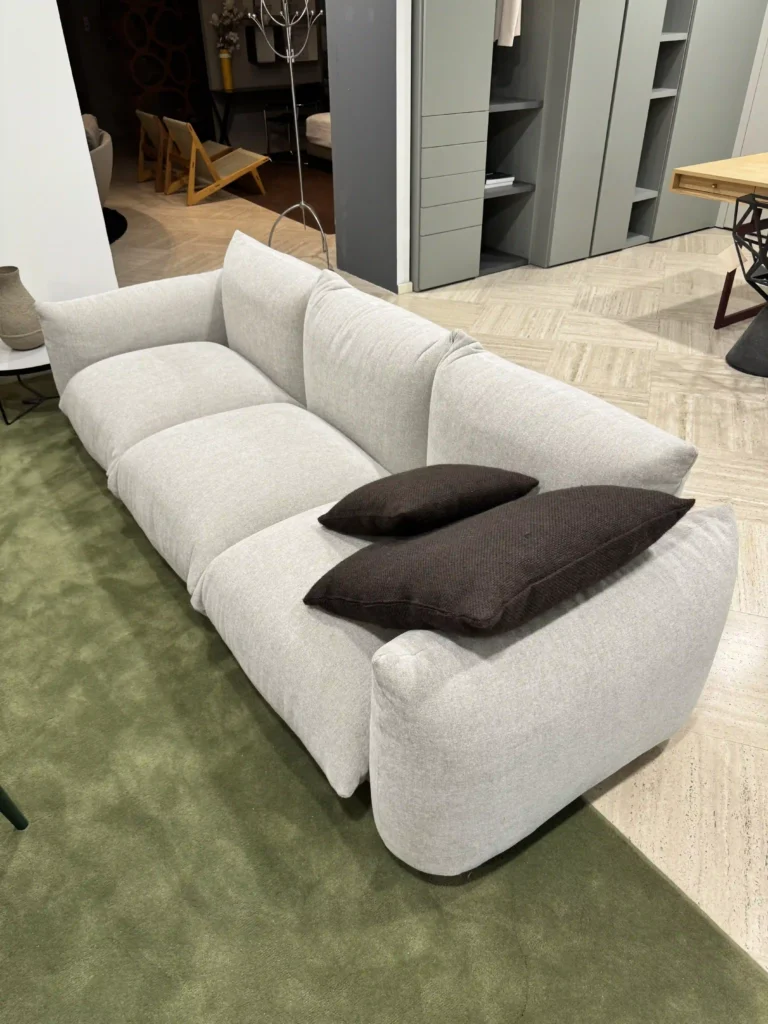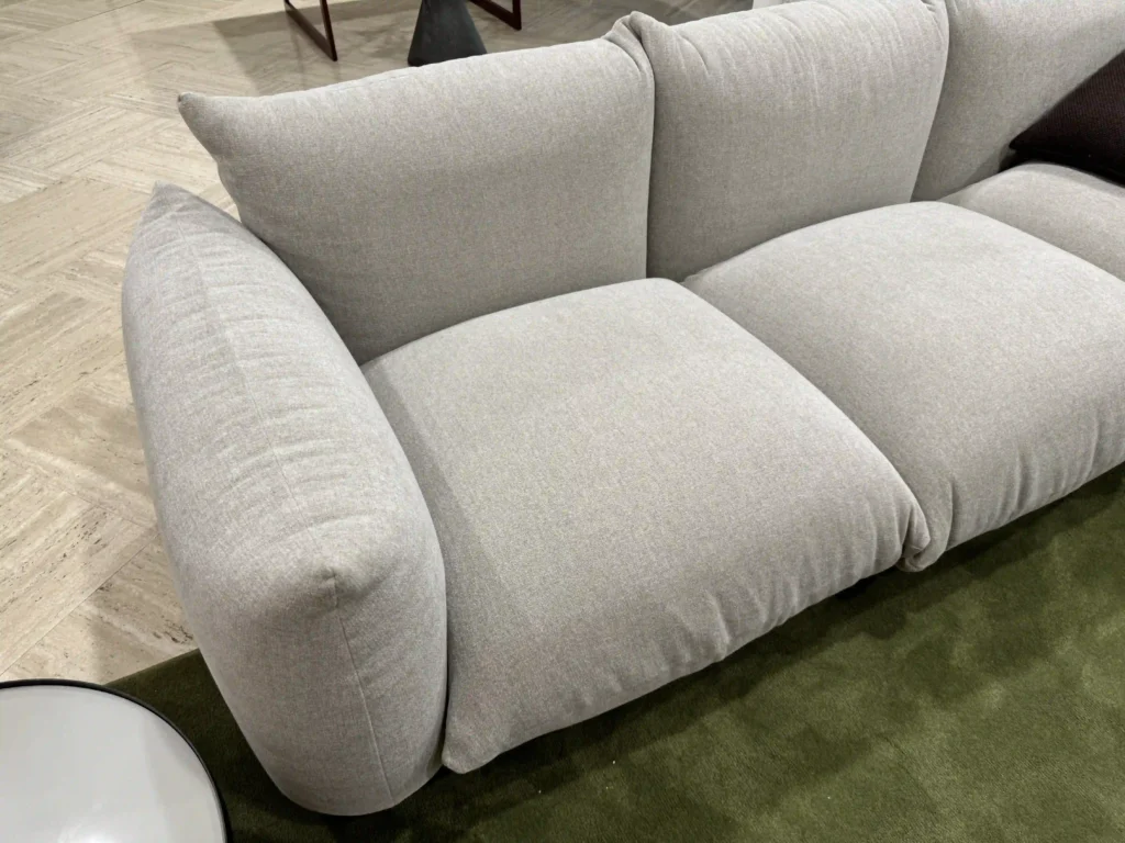 Il divano Marenco รจ un'icona del design italiano, creato da Mario Marenco nel 1970 e ancora oggi un must dellโ€™arredamento contemporaneo. Questo divano si distingue per un innovativo sistema di assemblaggio, dove i cuscini e i braccioli vengono infilati su un telaio in tubolare metallico, che assicura rigiditร  e durata. La struttura di base รจ realizzata in multistrato, accoppiato con fibra e rivestito per un look robusto e sofisticato.