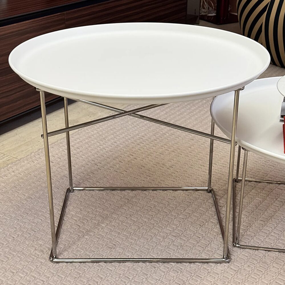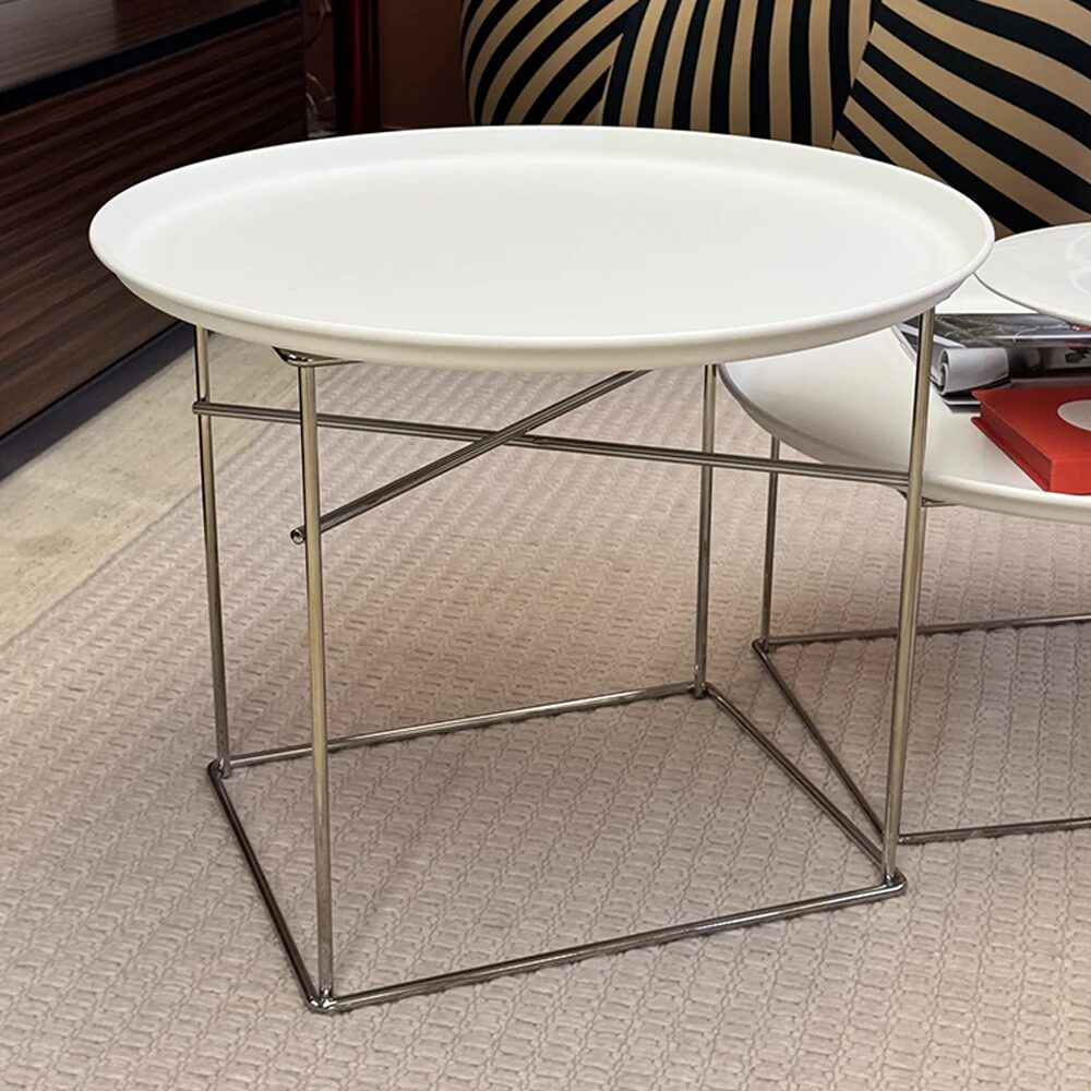 Il tavolino Fat-Fat di B&B Italia, progettato dalla rinomata designer Patricia Urquiola, si distingue per la sua leggerezza e semplicità. La sua struttura in acciaio verniciato Bianco Gesso offre un design contemporaneo e minimalista, perfetto per essere accostato a qualsiasi tipo di divano o ambiente moderno. Il tavolino, con le sue linee essenziali, è un perfetto esempio di eleganza funzionale, unendo stile e praticità in un'unica soluzione d'arredo.