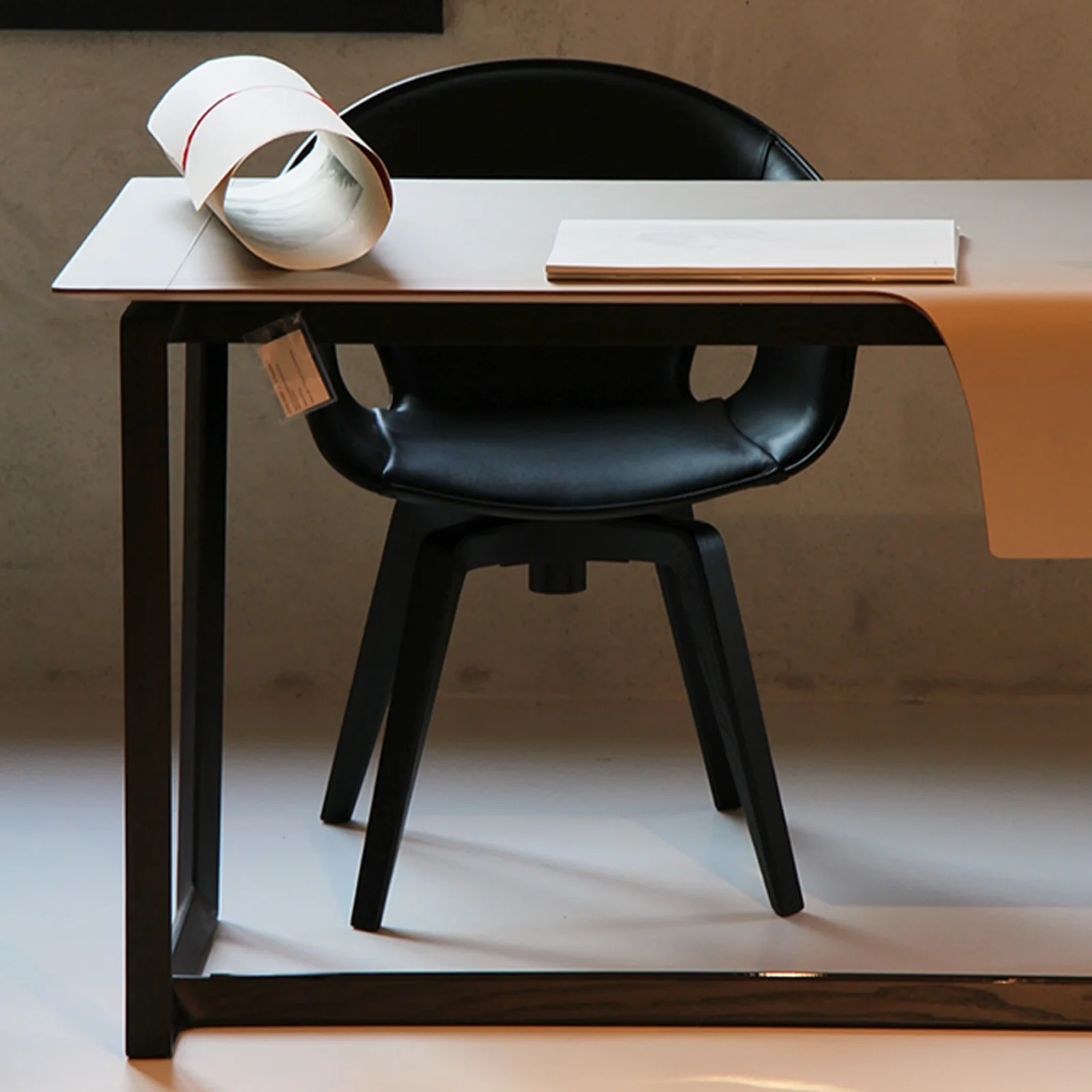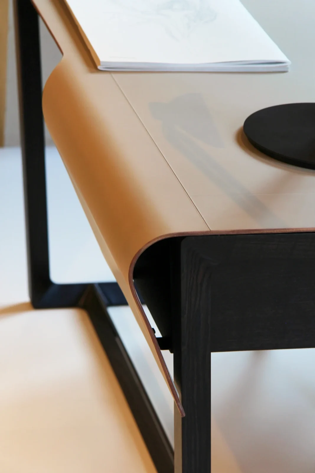 Una caratteristica distintiva di Fred รจ il particolare procedimento artigianale utilizzato per curvare il cuoio nella parte frontale, senza l'uso di supporti interni, mantenendo cosรฌ la purezza del design e la continuitร visiva. Questa scrivania รจ la soluzione ideale per chi desidera creare uno spazio studio armonioso, in particolare se abbinata alla seduta Ginger, progettata specificamente per completare l'eleganza e la funzionalitร della zona ufficio o studio.