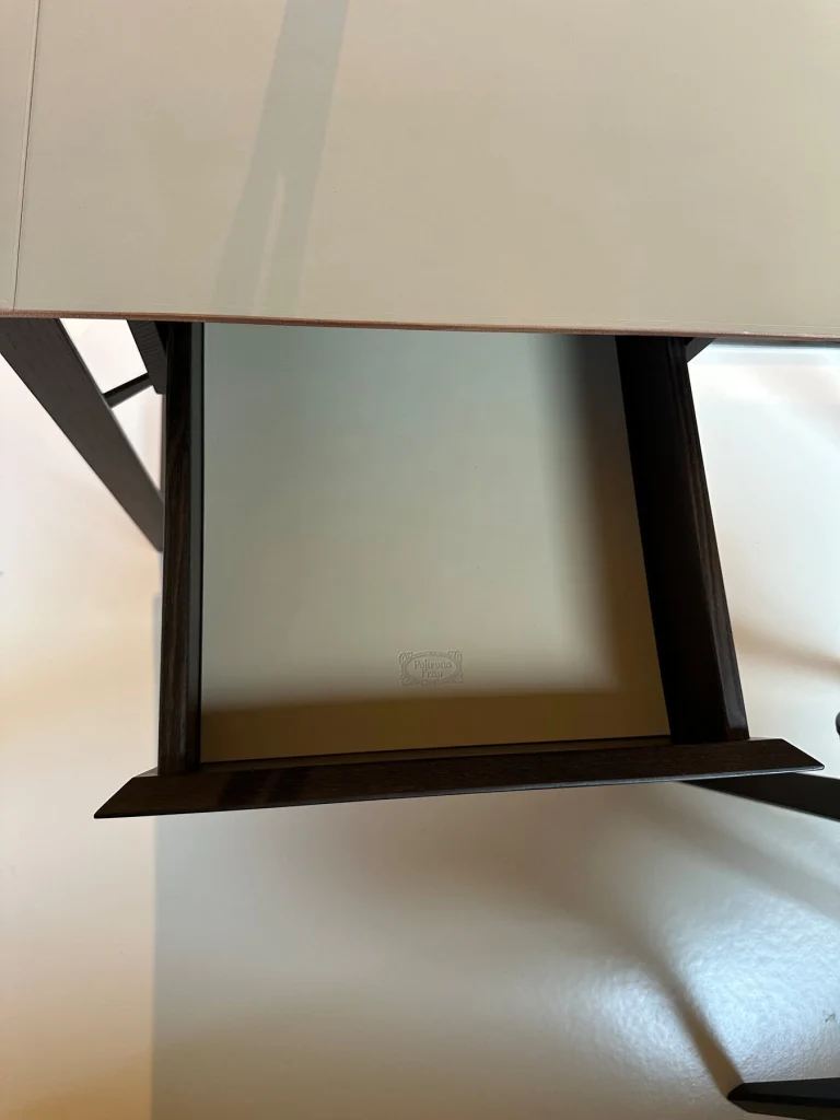 La scrivania Fred, realizzata in frassino wengรฉ con dettagli in cuoio, รจ un capolavoro di leggerezza geometrica e design stiloso. Ideata per fondere estetica e funzionalitร , Fred si distingue per le sue linee sottili e quasi aeree, che conferiscono all'intera struttura un'eleganza contemporanea. La superficie in cuoio, lavorata con maestria artigianale, presenta delicate incisioni e marcature a freddo, eseguite a mano, che aggiungono dettagli grafici sottili ma sofisticati.