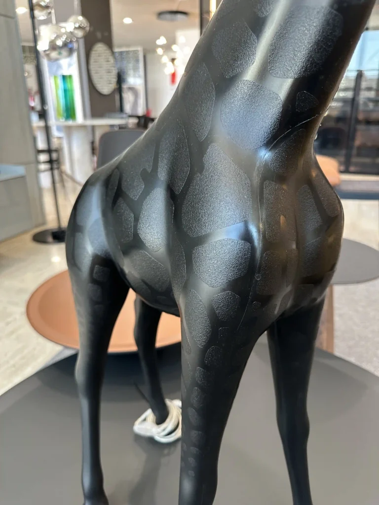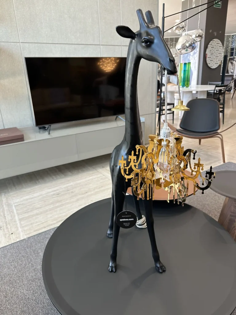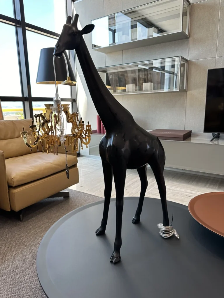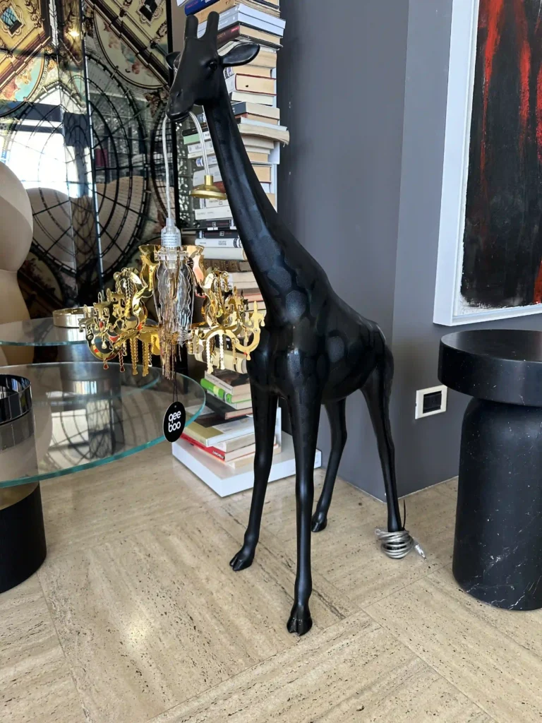 Giraffe In Love XS รจ una lampada scultorea e versatile nata dalla creativitร di Marcantonio in collaborazione con Qeeboo. Raffigura una giraffa alta 2,65 metri che sostiene un lampadario in stile classico Marie-Thรฉrรจse, creando un contrasto tra ironia e eleganza. Realizzata in polietilene, รจ disponibile nella colorazione Nero ed รจ pensata per adattarsi a qualsiasi ambiente, diventando un punto focale nel salotto o in spazi dal design eclettico. Lโopera riflette la passione del designer per il mondo naturale, reinterpretato in chiave artistica e giocosa, perfetto per dare un tocco audace e sorprendente a qualsiasi spazio.