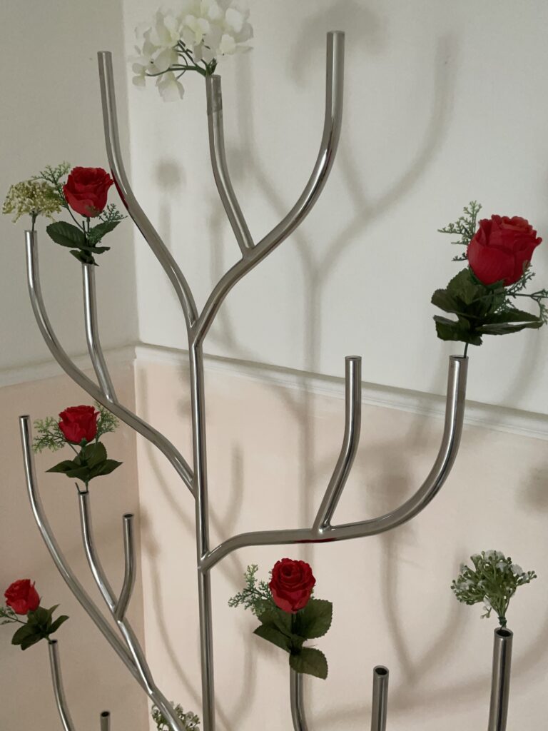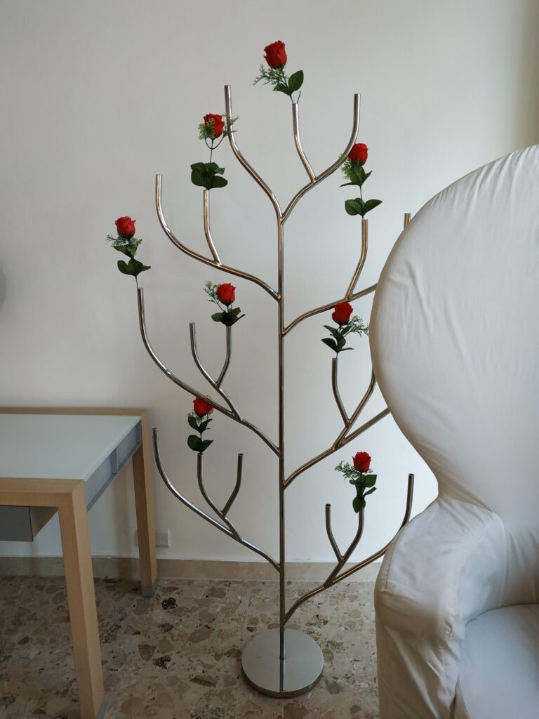 Fioriera con struttura e base inox lucidato, come un esile alberello i cui rami salgono al cielo, la semplicitร  tipica... Leggi di piรน
