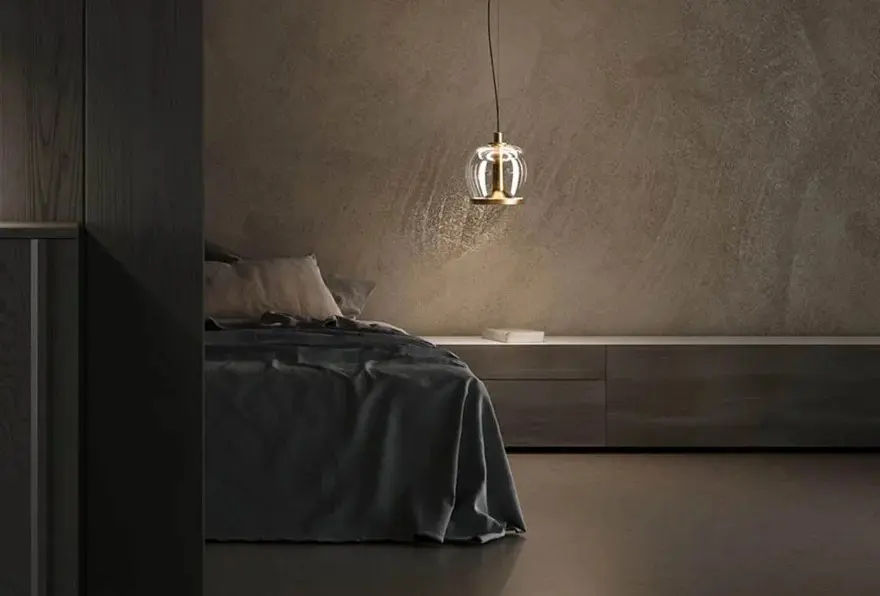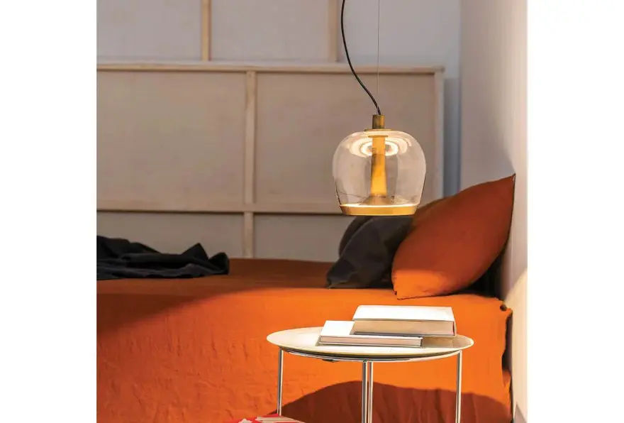 In questa versione, Aurelia S22 SS Bold รจ proposta con diffusore trasparente effetto acqua, che amplifica la profonditร visiva della luce. Inoltre, la struttura in ottone vintage aggiunge un accento caldo e sofisticato, ideale per living, sale da pranzo e spazi contract di alto livello.