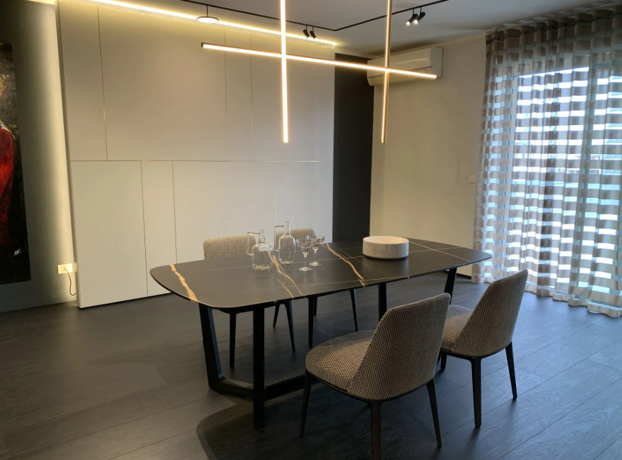 La lampada a sospensione Coordinates S2 di FLOS rappresenta il perfetto equilibrio tra design estetico e funzionalitร . Le dimensioni generose (L 176,2 cm x H 92,2 cm) la rendono un elemento centrale in qualsiasi stanza, mentre la finitura champagne dell'alluminio estruso aggiunge un tocco di sofisticatezza. Il diffusore con striscia LED integrata assicura un'illuminazione diffusa e piacevole, perfetta per creare un'atmosfera accogliente e contemporanea.
