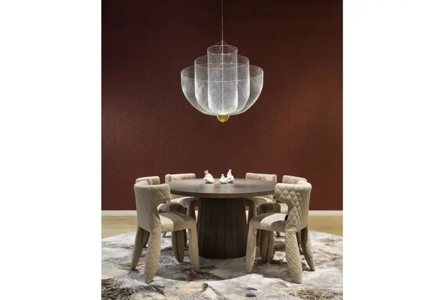 La Lampada a sospensione Meshmaticsย รจ una lampada di design progettata da Rick Tegelaar per il marchio Moooi, caratterizzata da una struttura scultorea che trasforma la luce in un elemento architettonico. Il progetto nasce dallโesplorazione delle possibilitร espressive della rete metallica, modellata con grande precisione per creare un effetto luminoso unico.