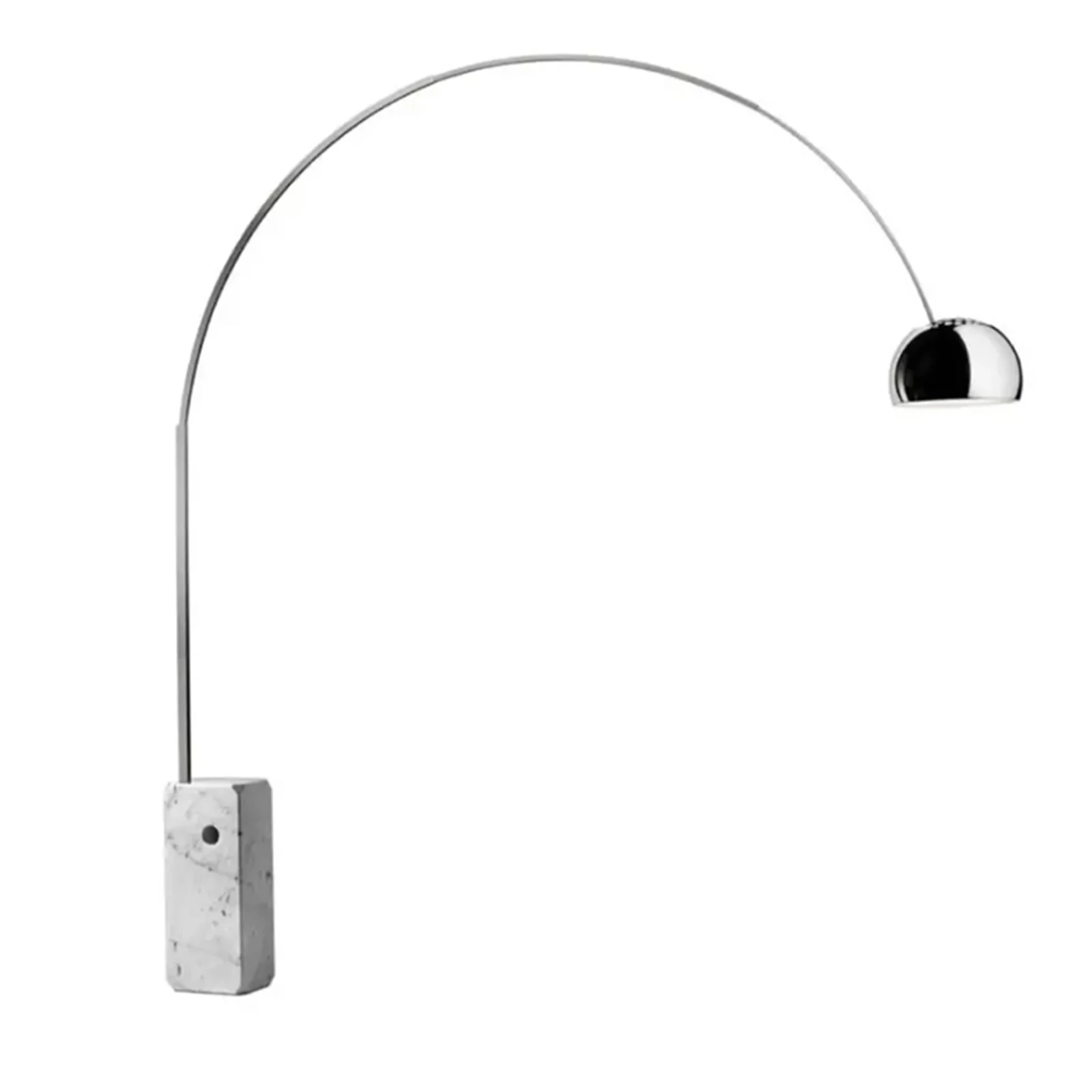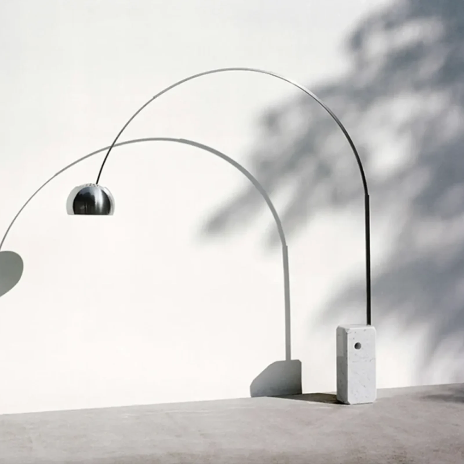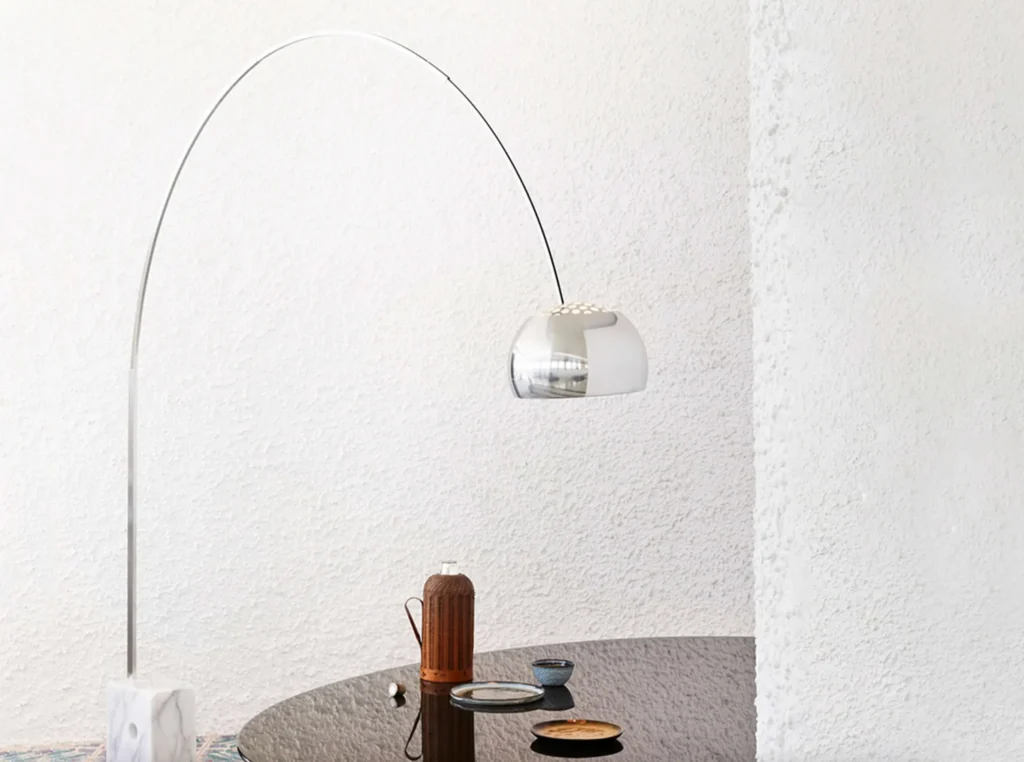 La lampada Arco, disegnata dai fratelli Achille e Pier Giacomo Castiglioni nel 1962, รจ un'autentica icona del design moderno. Con la sua base in marmo bianco di Carrara e il suo arco telescopico in acciaio inossidabile, Arco si distingue per le sue dimensioni notevoli e per il suo mix di materiali sorprendenti, che fondono la classicitร  del marmo con la modernitร  dell'acciaio.