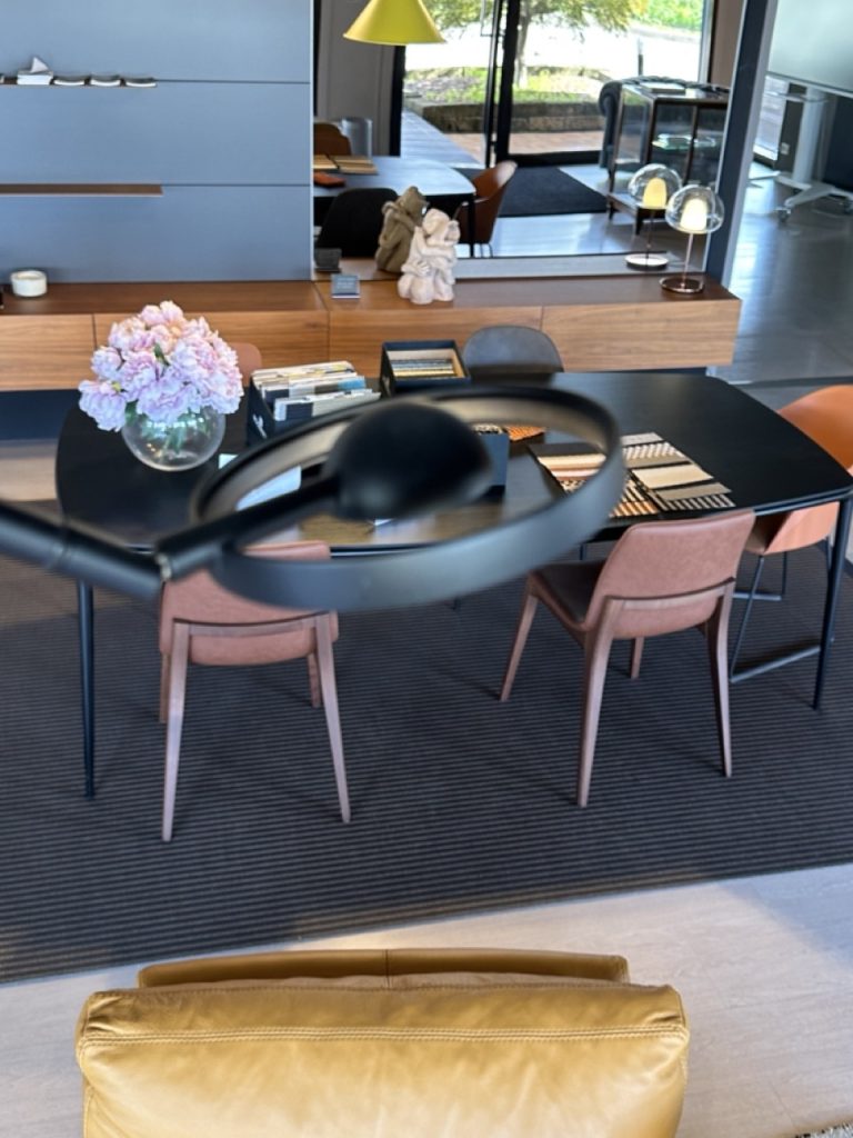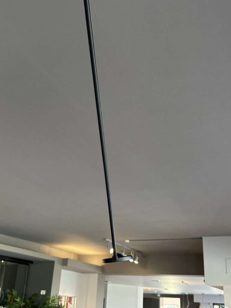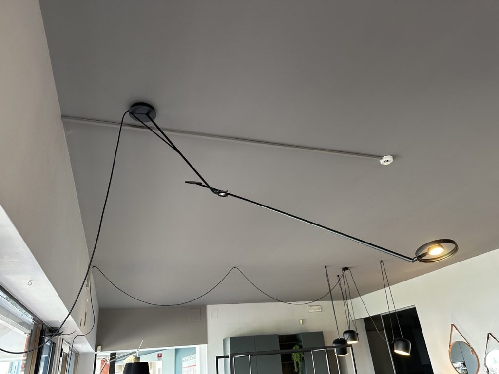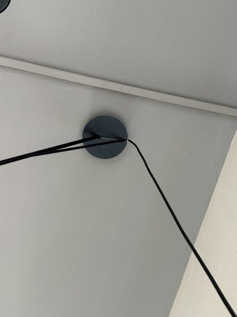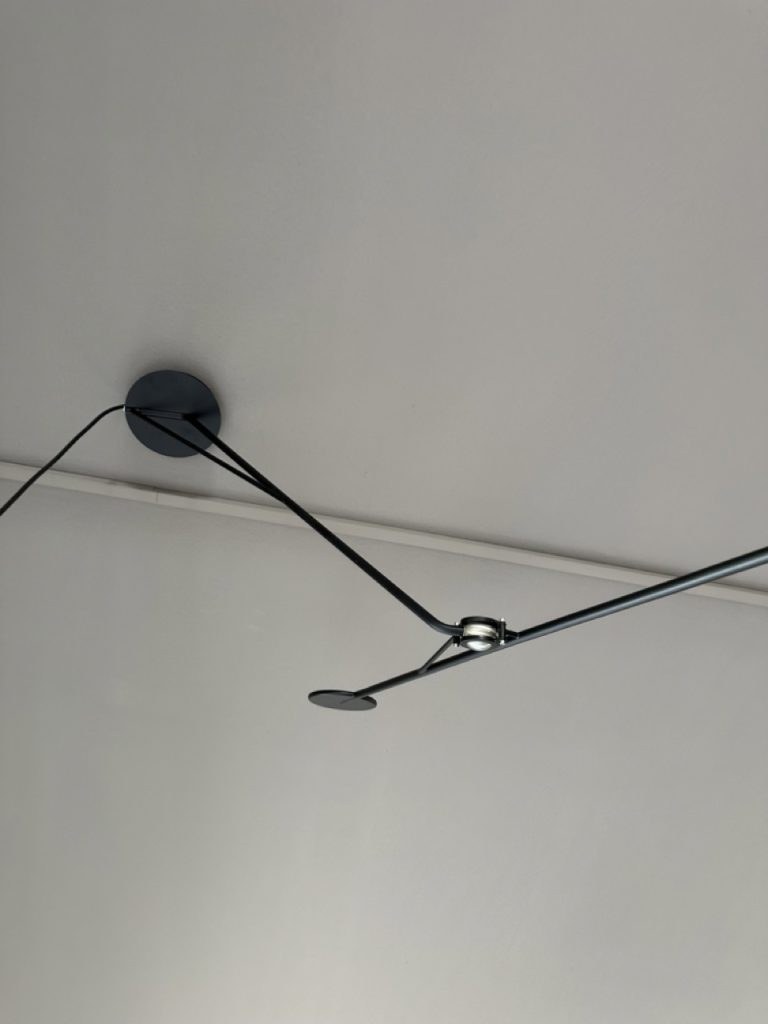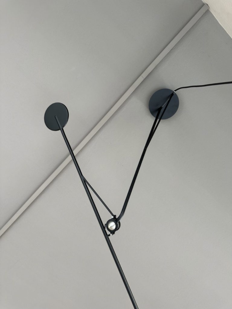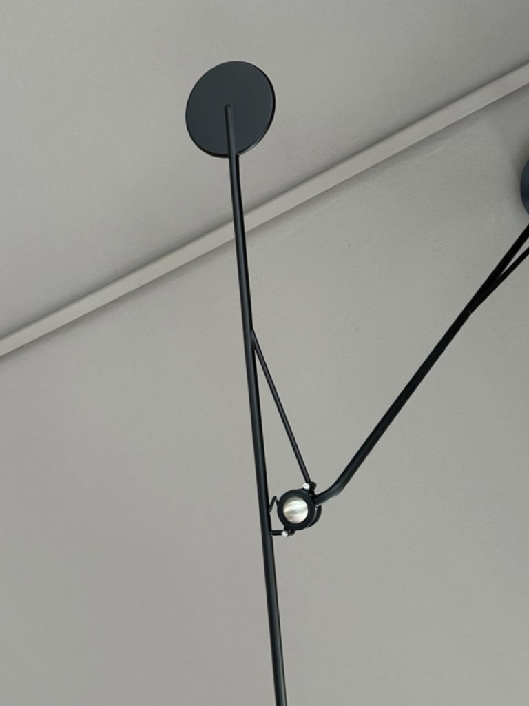 - Materiale: Realizzata in alluminio e acciaio verniciato con una finitura nero opaco per un look moderno e minimalista.