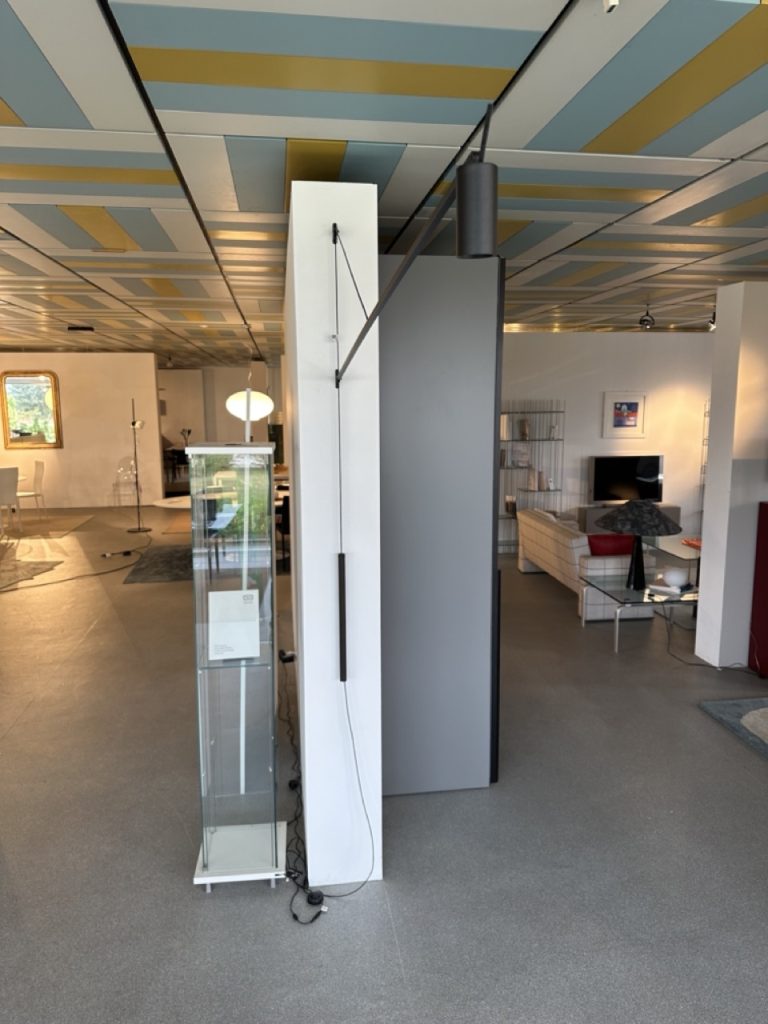 • Flessibilitร  e regolazione: Il braccio della lampada รจ estensibile, passando da una lunghezza di 134 cm a 184 cm, permettendo di adattarla facilmente alle necessitร  di illuminazione e agli spazi circostanti. Nonostante il movimento, il design rimane compatto e lineare.