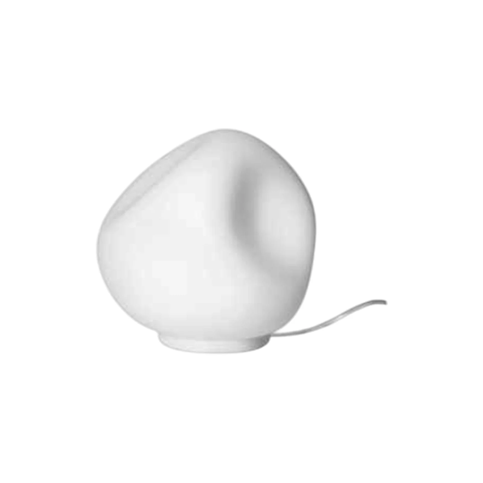 Hoba Midi รจ una lampada da tavolo contemporanea firmata da Ludovica + Roberto Palomba per Foscarini, che unisce sperimentazione progettuale e tradizione artigianale. La forma fluida e irregolare in vetro incamiciato soffiato a bocca, realizzato senza stampo chiuso, rende ogni pezzo unico e irripetibile.
