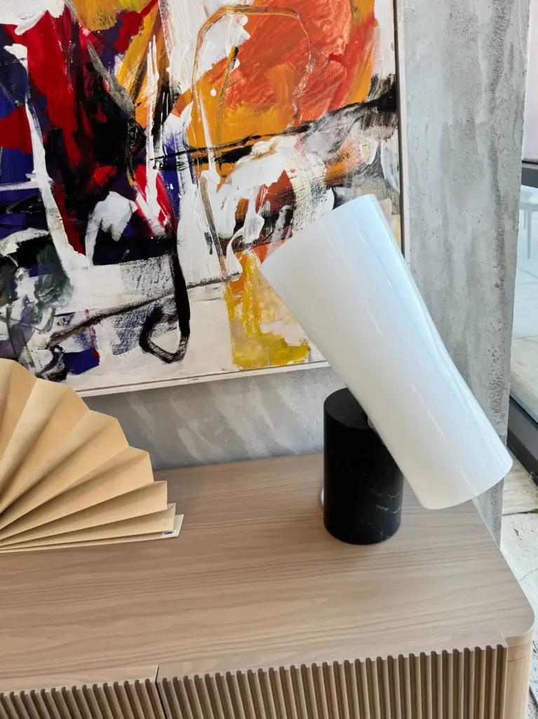 La base della lampada Nile รจ realizzata in marmo lucidato, lavorato a mano con una finitura opaca che ne esalta la bellezza naturale. Questo materiale pregiato conferisce alla lampada un aspetto solido ed ideale per ambienti che richiedono un tocco di classe. Il diffusore รจ in vetro incamiciato bianco, soffiato a bocca, che si adagia delicatamente sulla base in marmo. Questa combinazione crea una pura armonia visiva, offrendo una luce morbida e avvolgente, perfetta per creare un'atmosfera rilassante e accogliente.